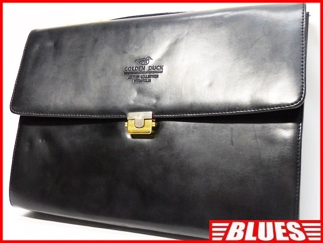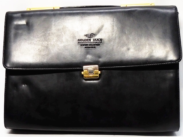 即決★GOLDEN DUCK★オールレザービジネスバッグ ゴールデンダック メンズ 黒 かばん 本革 カバン 本皮 通勤 出張 書類鞄 收藏