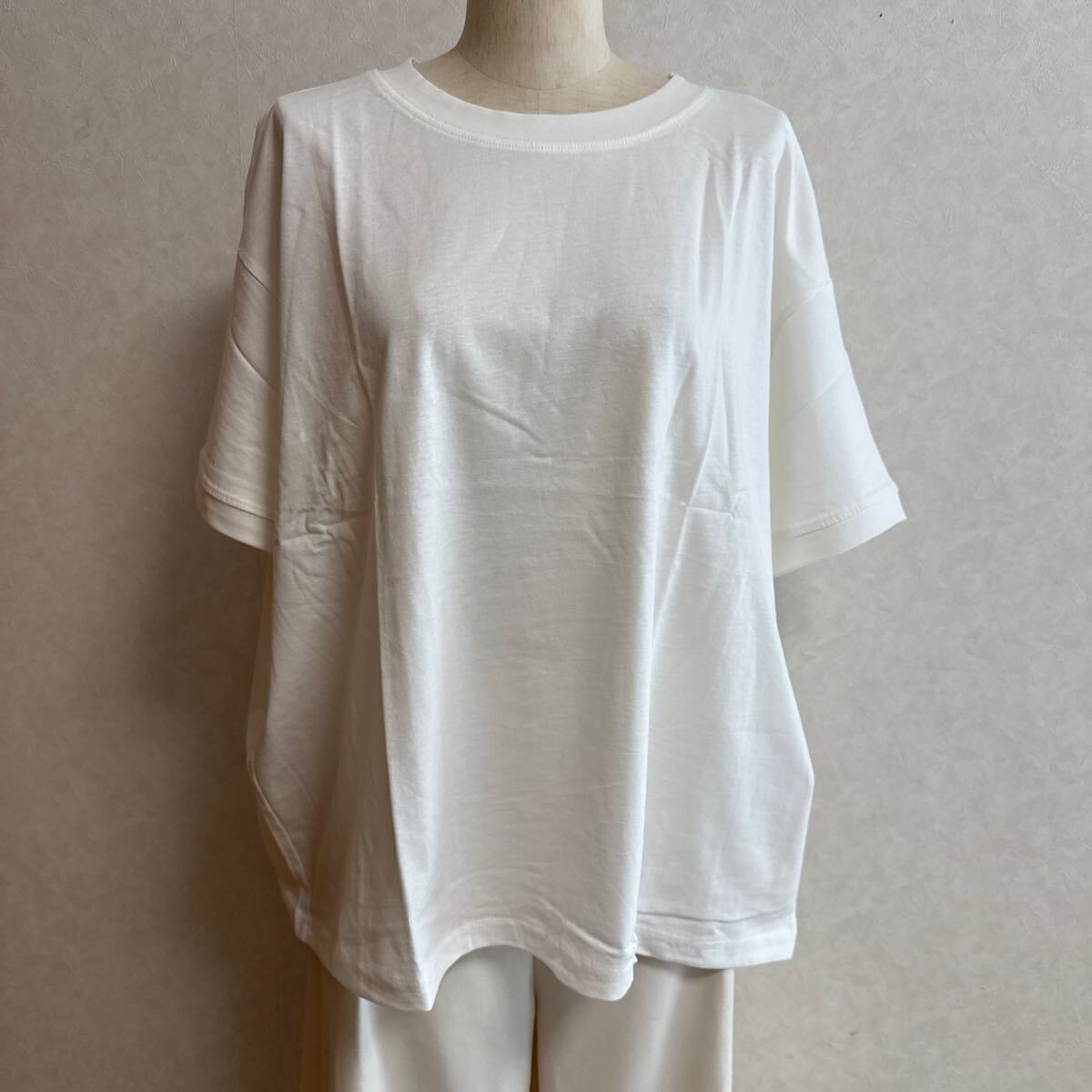 KN2915*4L 大きいサイズ ホワイト Tシャツ 半袖 カットソー綿100%ひんやり素材 收藏