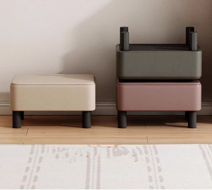 リビング 脚付き 滑り止め 脚置き 玄関 寝室適用 椅子 プチスツール 高反発 スクエア オットマン PUレザー ブラック 收藏