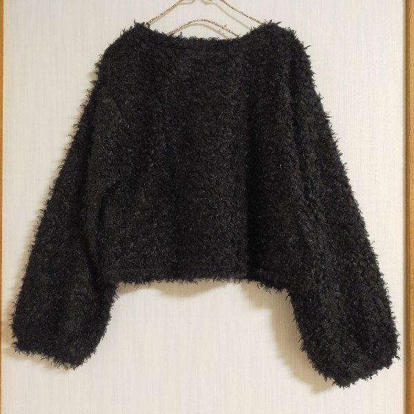 美品 earth music & ecology もふもふショート丈ニット ブラック レディース 秋冬 長袖 カジュアル 黒 冬