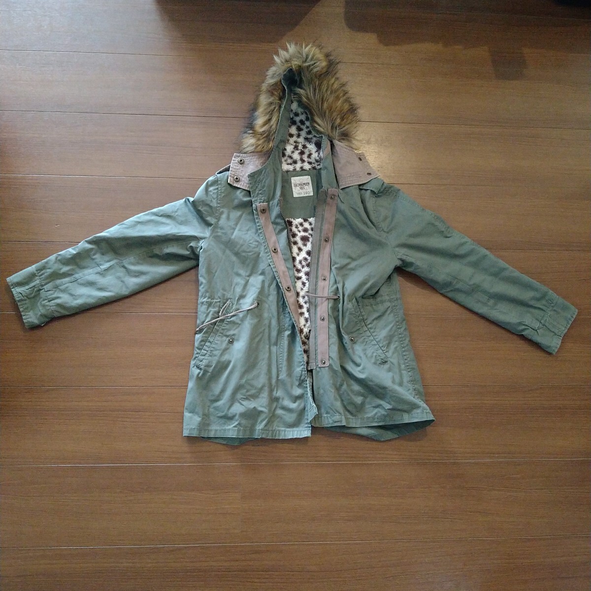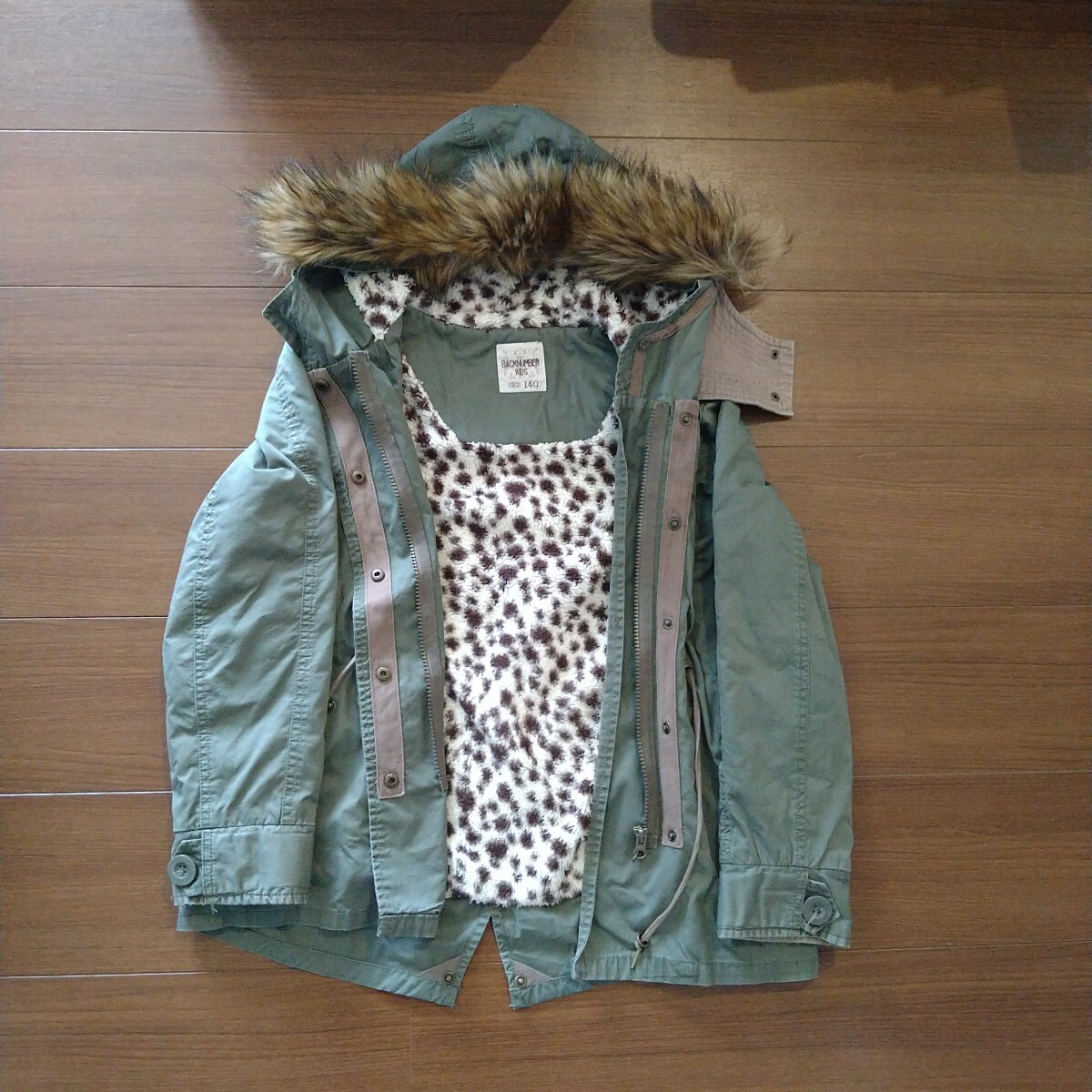ライトオン バックナンバーキッズ BACKNUMBER KIDS フードつきジャケット カーキ色 サイズ140 中古品 收藏