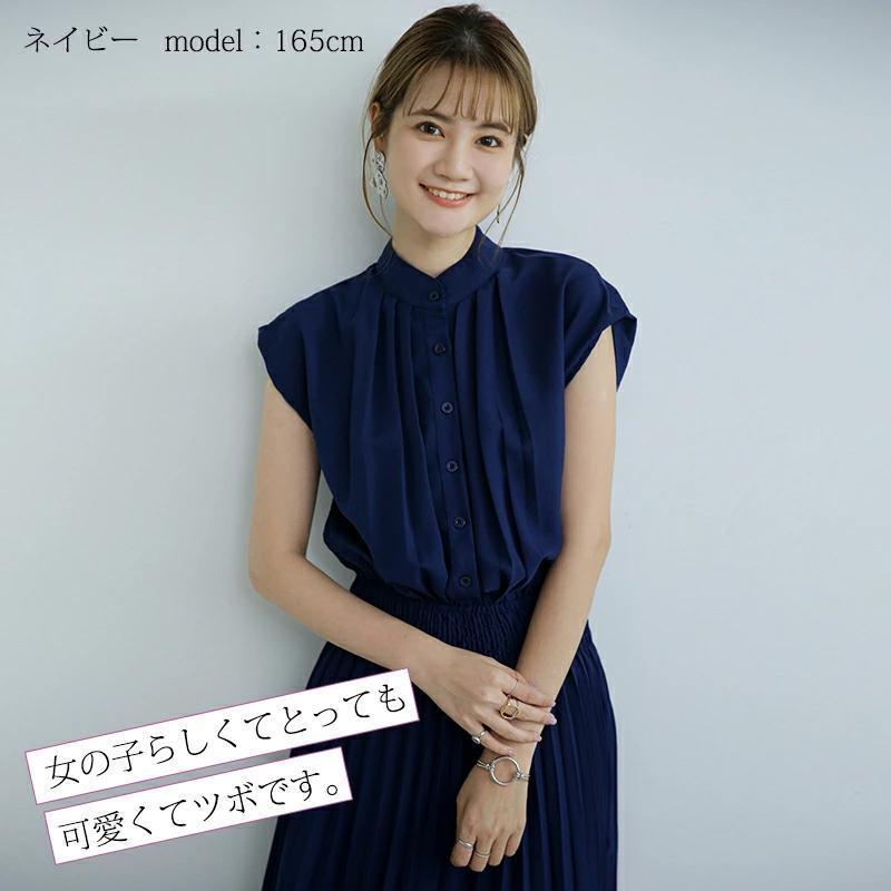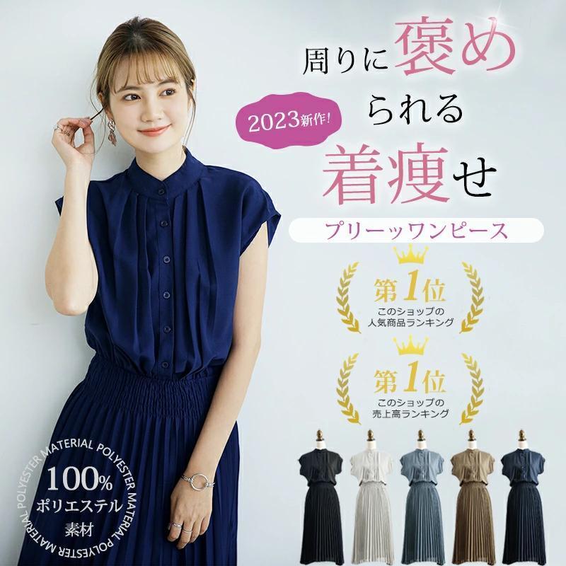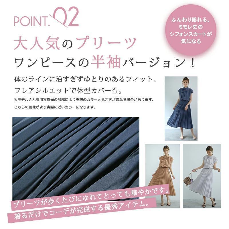 【ネイビー】 半袖 ワンピースプリーツ XLサイズ シフォン ロング レディース 無地 新品 未使用 收藏