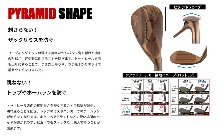 【商品特徴】 <打感が軟らかく、使い込むほど味が出る銅メッキ仕上げ!> ■苦手なバンカーが好きになる! ■徹底的に抜けの良さにこだわった新ソール ■潜らない!バンカーから楽々脱出 ■刺さらない!ザックリミスを防ぐ ■跳ねない!トップやホームランを防ぐ ■抜けの良さを向上 ■やさしさ向上 ■キュキュッと止まるスピン性能を追求 【商品詳細】 ●状態:新品・未使用品 ●商品番号:DW-123 Copper ●ヘッド素材:軟鉄(ヘッド部分) ●製造国:日本 ●ロフト:58度 ●クラブ長さ:35inch ●ライ角:63.5度 ●バンス角:センター/7.0度 ヒール/2.0度 トゥ/-4度 ●バランス:D5 ●重量:460g ●シャフト:N.S.PRO MODUS3 TOUR 120 (FLEX:S) ●グリップ:オリジナルラバーM58F R 51g ※撮影時の光量の具合や、ご覧いただいております画面環境によりまして、実際の商品と若干色味が違う場合がございます。 ※商品詳細のスペック値はメーカー表記の数値となりますが、個体差による若干の公差がございます。