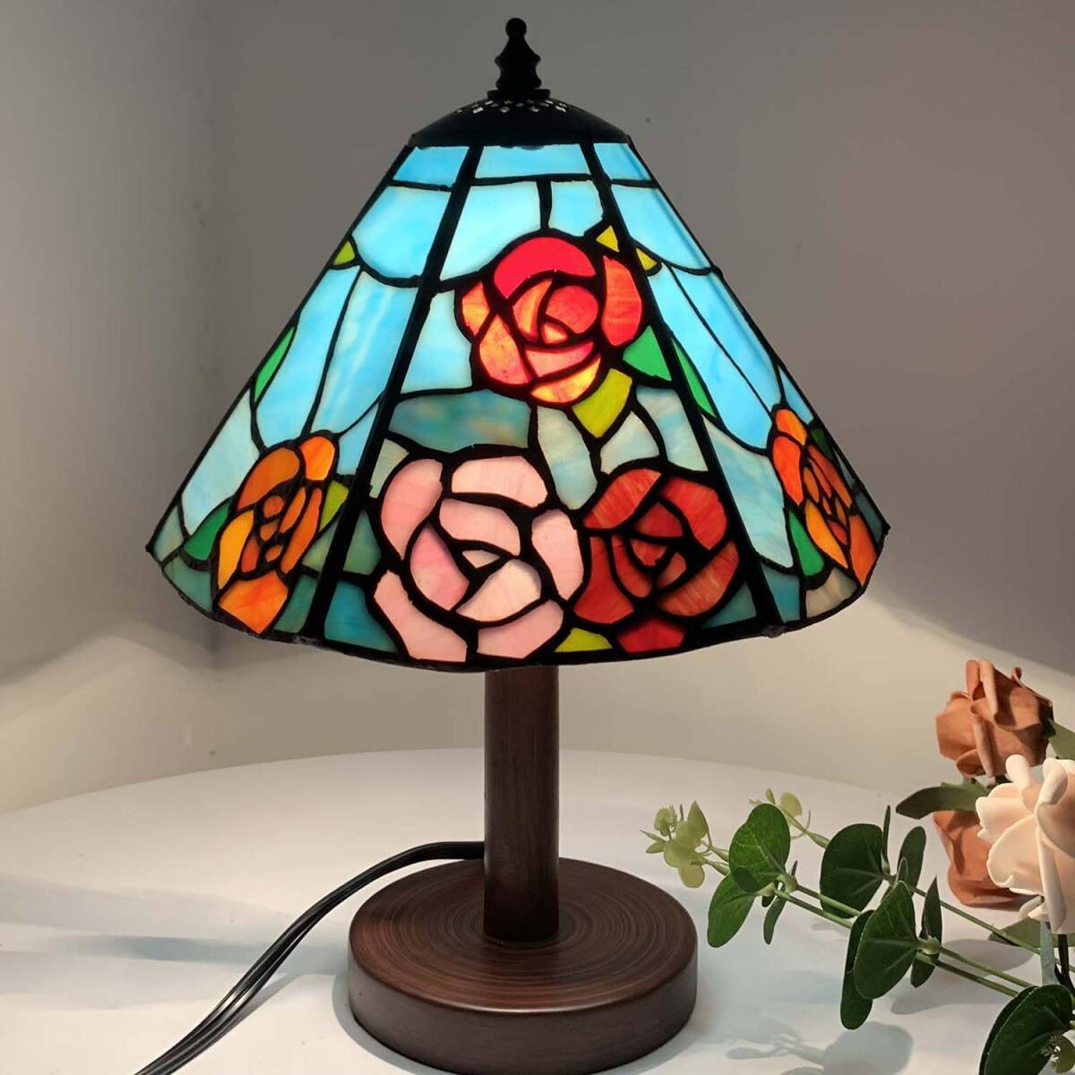 おすすめ ☆爽やかなブルー バラが彩る ステンドグラス 耐久性抜群 コンパクトデ 收藏