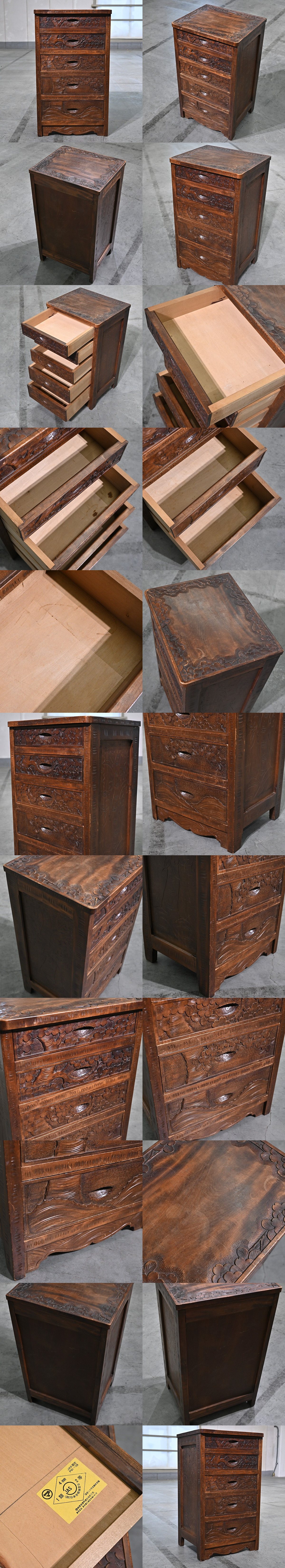 伝統工芸 軽井沢彫り 箪笥 ミドルチェスト 引き出し 5杯 整理 松原産業 桜彫刻 星打ち 玄関 手彫り 和タンス_松本民芸 岩谷堂 北海道 九州 收藏