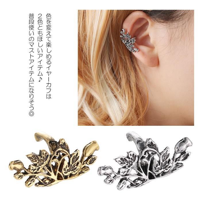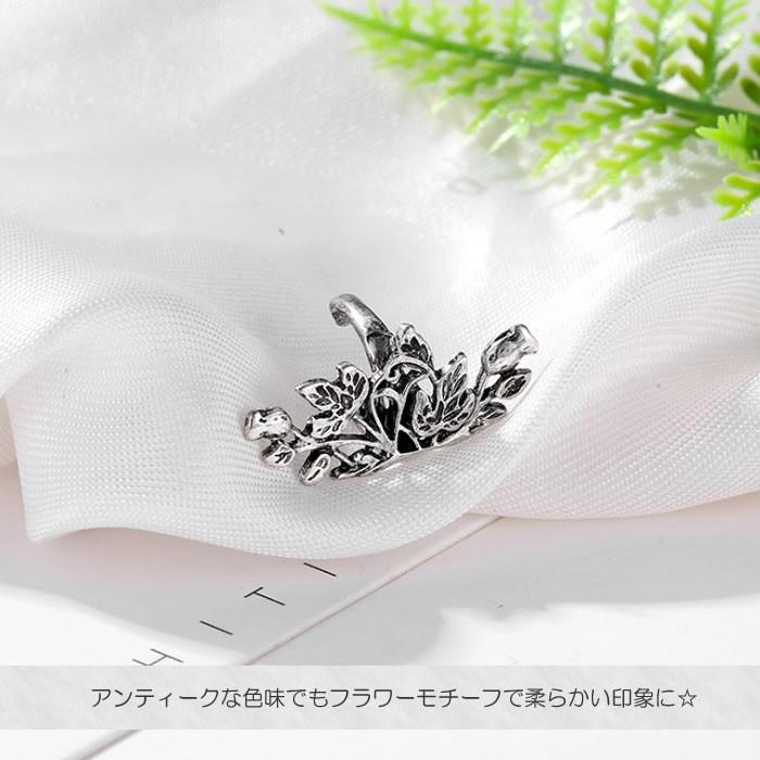 イヤーカフ アンティーク風 フラワー リーフ 花 葉 ゴールド シルバー アクセサリー レディース メンズ ユニセックス ノンホール 片耳用 送料無料