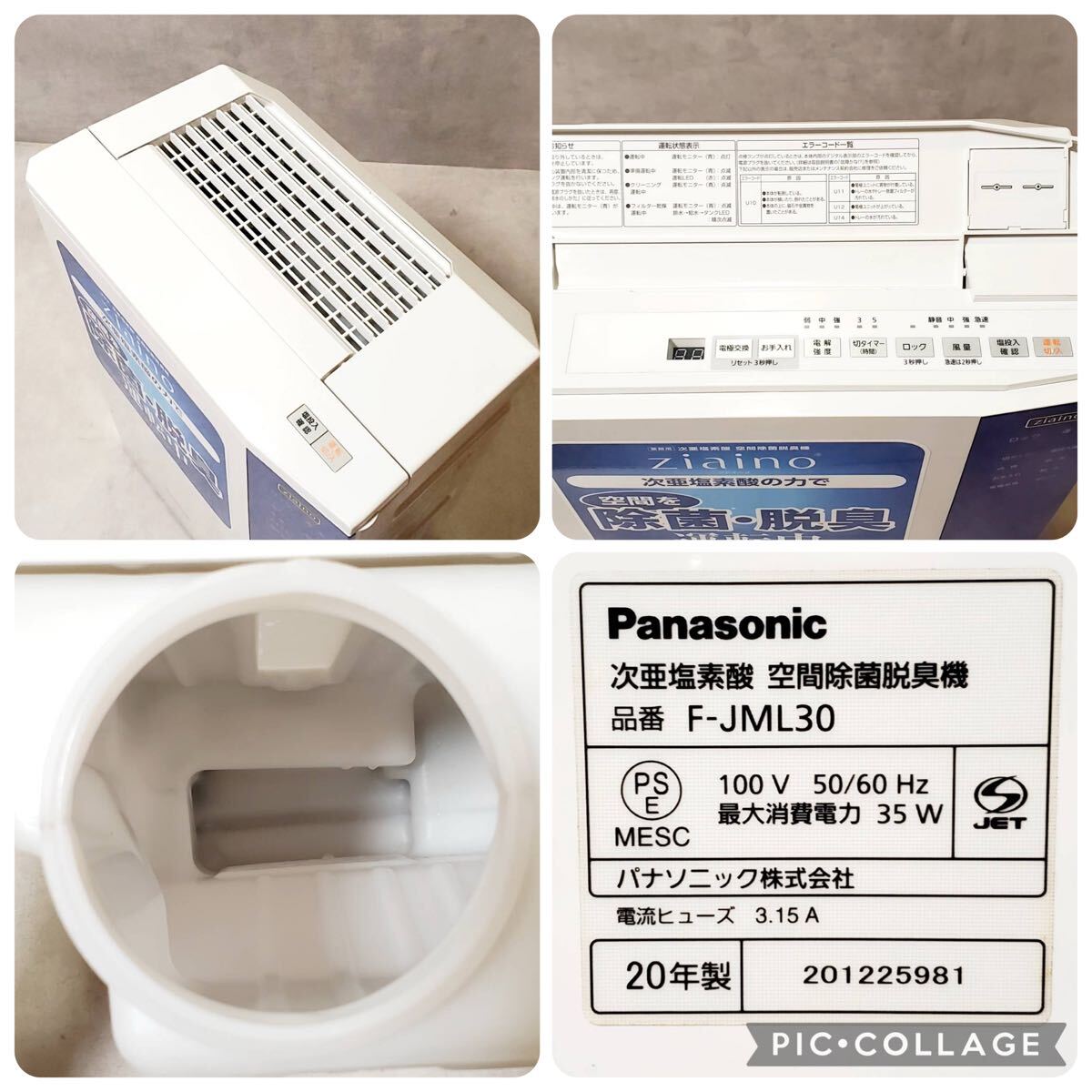 【動作良好】Panasonic F-JML30 ジアイーノ 次亜塩素酸 空間除菌脱臭機 ホワイト 24畳対応 空気清浄機 加湿機能付き 脱臭器 動作確認済 收藏