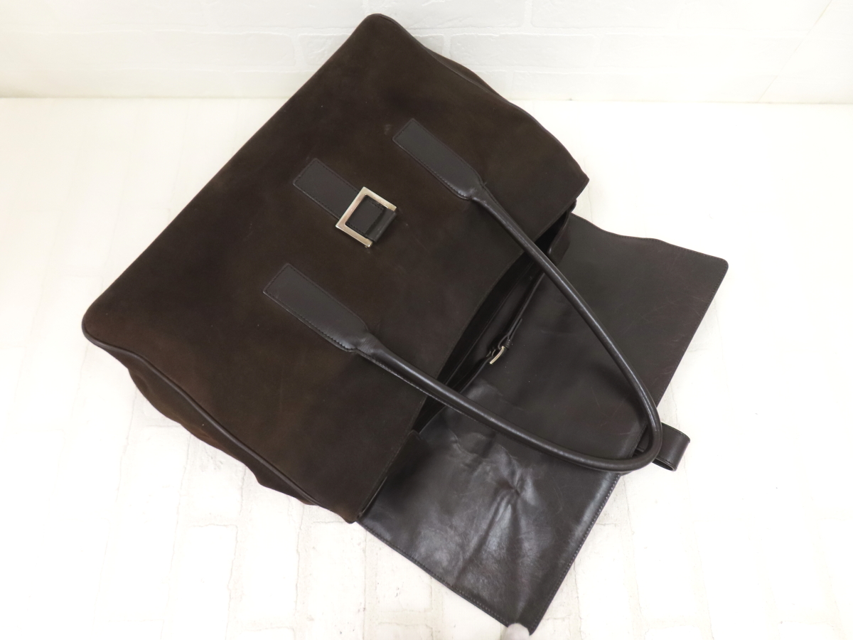 ◆美品◆GUCCI グッチ◆スエード カーフ レザー 本革◆ハンド バッグ◆ブラウン シルバー金具◆イタリア製◆ロゴ型押し◆フラップ◆A14259 收藏