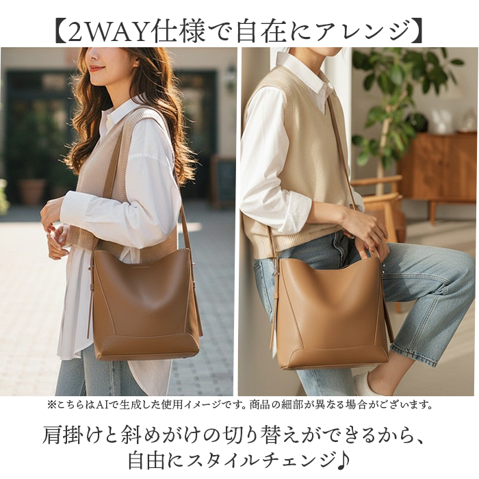 | 商品説明 | ・・【上品に彩る大人スタイル】 ・毎日をスタイリッシュに格上げする「きれいめショルダーバッグ」。 ・【2WAY仕様で自在にアレンジ】 ・肩掛けと斜めがけの切り替えができるから、自由にスタイルチェンジ♪ ・【ファスナー付きの大きな仕切り】 ・整理整頓が楽に! ・ファスナー付き仕切りと便利なポケット付き。 ・【小物ポケット付き】 ・収納部には二つのポケットを装備。細かいアイテムも迷わず整理できて便利! ・【両サイドに収納スペース付き】 ・メイン収納の両サイドにはB5サイズも入れられる収納スペース付き。 ・【マグネット式で開閉】 ・開口部はワンタッチで開け閉めできて楽ちん〇 ・【5段階調整】 ・ショルダーベルトは回転調節ボタンで長さを変えられる。 ・【自立するスマートな底面】 ・床に直置きしても倒れず、足元に置いてもエレガントな印象を演出できる〇 ・【柔らか素材】 ・滑らかな手触りが上品で、コーデにも自然に溶け込む〇 |