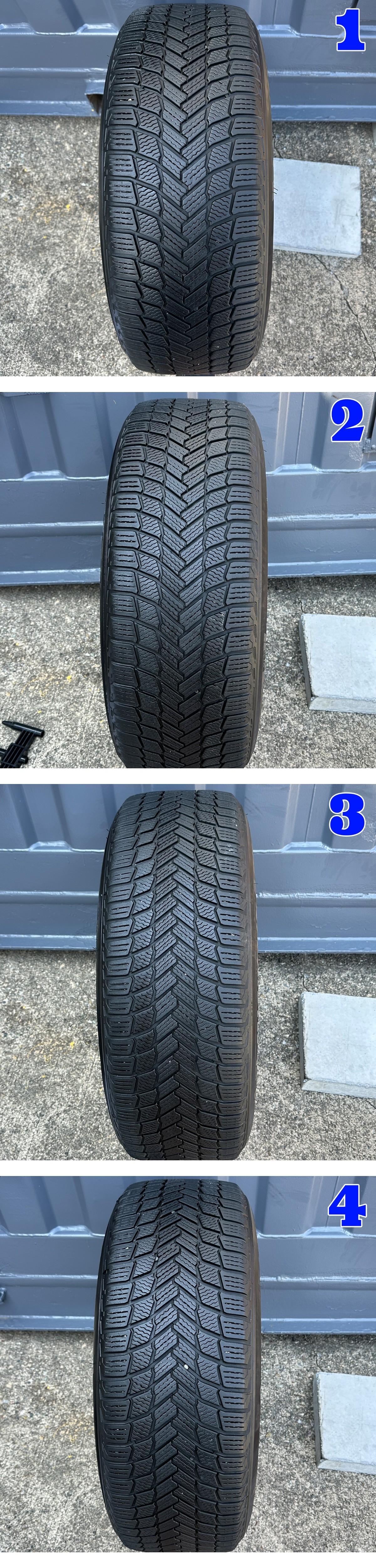 スタッドレスタイヤはMICHELIN X-ICE SNOW SUV 265/60R18が付いており、グランドチェロキーの他にダッジ デュランゴにも装着可能です。 タイヤの製造年は2021年製になります ![]() powered by auction-labo.com ★ホイールのメーカー JEEP純正 ★ホイールのサイズ 18x8 5H127 オフセット +56.4 ハブ径約71.5mm ★ホイールの状態ですが4本とも多少腐食やくすみなどございますが、大きく気になる箇所がございませんでしたので、それぞれ3分割+にセンターキャップの画像をアップで撮っていますのでご確認ください。 あくまで中古品ですので画像では分かりにくいキズや汚れなどございます。 適合車種 2010-2021y ジープ グランドチェロキー 3.6L 2010-2021y ダッジ デュランゴ 3.6L ※5.7L HEMIや6.4L SRT8などはブレーキが大きく取付できない可能性もございます ※取り付けのナットは付属しませんので、落札者様の方でご用意してください。 ※空気圧センサーはついているかわからない為、付いて無い物と思ってください。 ★タイヤのメーカー MICHELIN X-ICE SNOW SUV スタッドレスタイヤ ★タイヤサイズ 265/60R18 ★製造年 1本目 2021年17週 2本目 2021年17週 3本目 2021年17週 4本目 2021年17週 ★タイヤの溝 1本目 約5.8mm / 2本目 約5.7mm / 3本目 約5.2mm / 4本目 約4.9mm ※上記数値はタイヤのセンター部分で計測 ※経過年数による経年劣化や若干の片べりが見受けられますので画像をよく見て判断してください。 ★エアー漏れやパンクはありません。 ※あくまでも中古品ですので、画像をよく見て参考にして判断してください。(携帯等でご覧の方は必ずご入札前にパソコンで画像をご確認ください) ※気になる事があればご質問よりお気軽にお問い合わせください!! ★ガレージYAMADA(株式会社YAMADA) 愛知県津島市百島町字三正六歩29-2 TEL 0567-28-4649 FAX 0567-28-4749 定休日 日曜日 営業時間 午前10時~午後19時 インスタ 【 garage_yamada_official 】 ブログはこちらをクリック!! 【管理番号】 YAM-5H127-01-B 注意事項 |