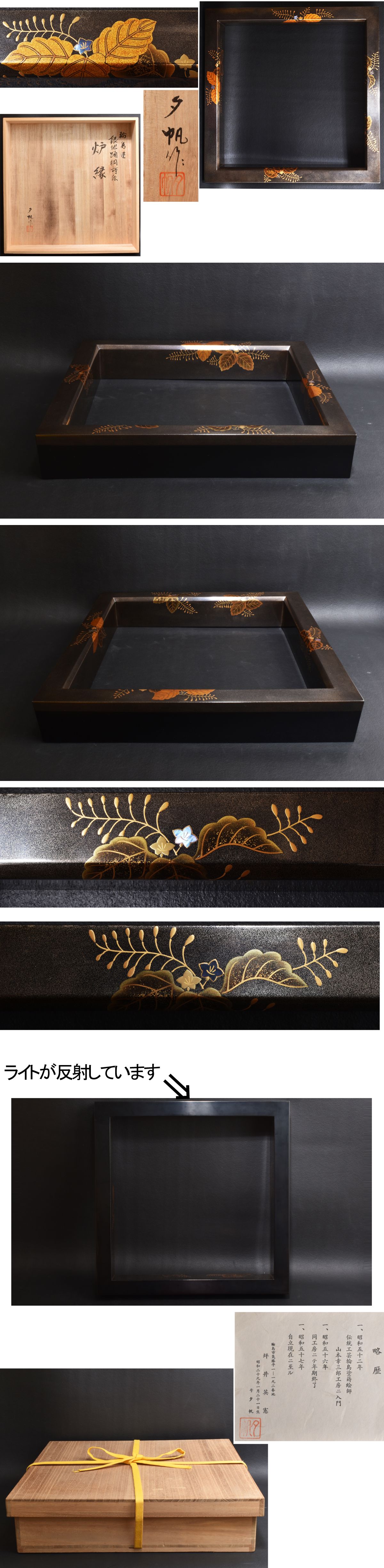 6232 輪島塗 炉縁 坪井栄憲(夕帆)銀地踊桐蒔絵 螺鈿 美品 共箱 收藏