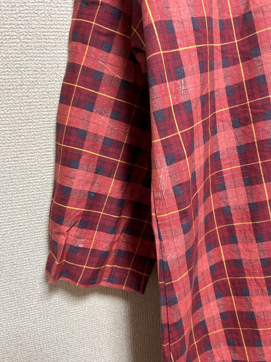 ヨーロッパヴィンテージ 八分袖 スモックシャツ プリントチェックシャツ ハンドメイド プルオーバー メンS相当 /EURO古着 收藏