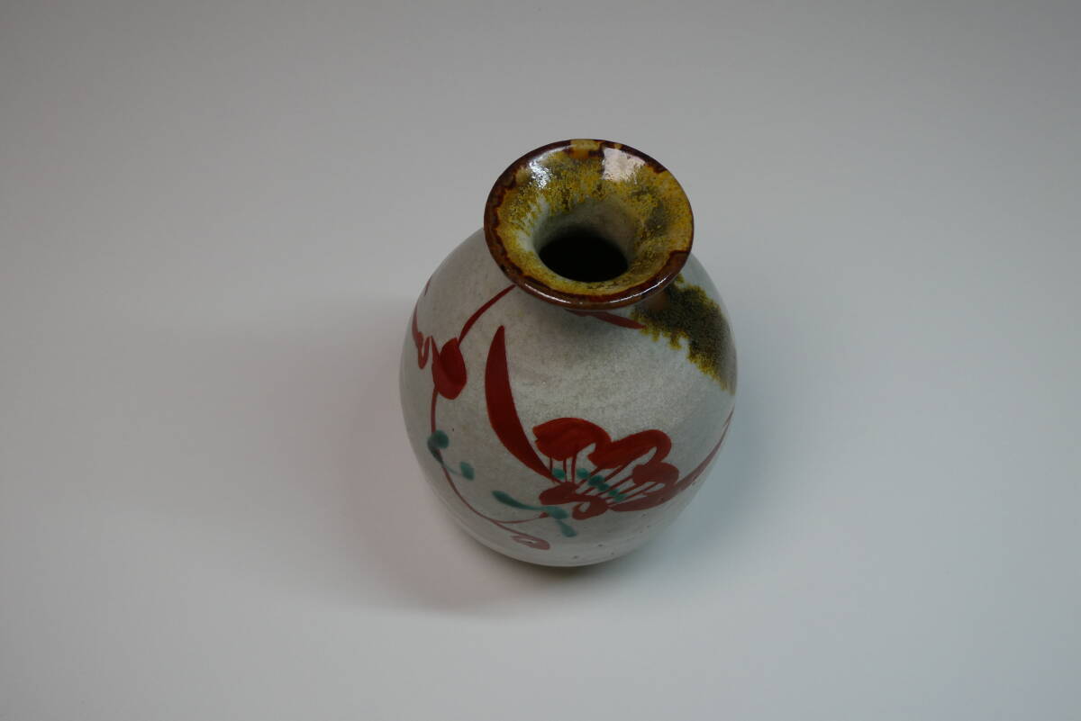 人間国宝 藤本能道 赤絵徳利 共箱 美品 一輪挿し 酒器 收藏