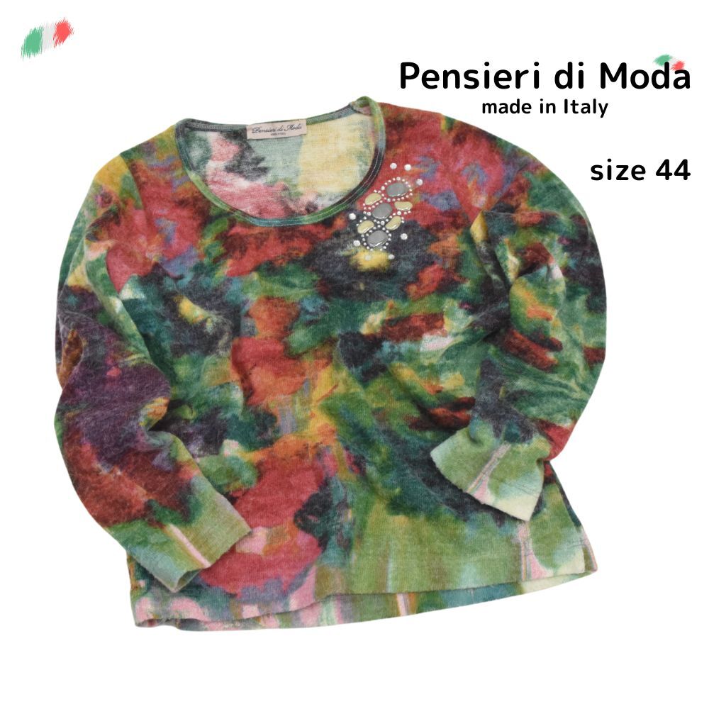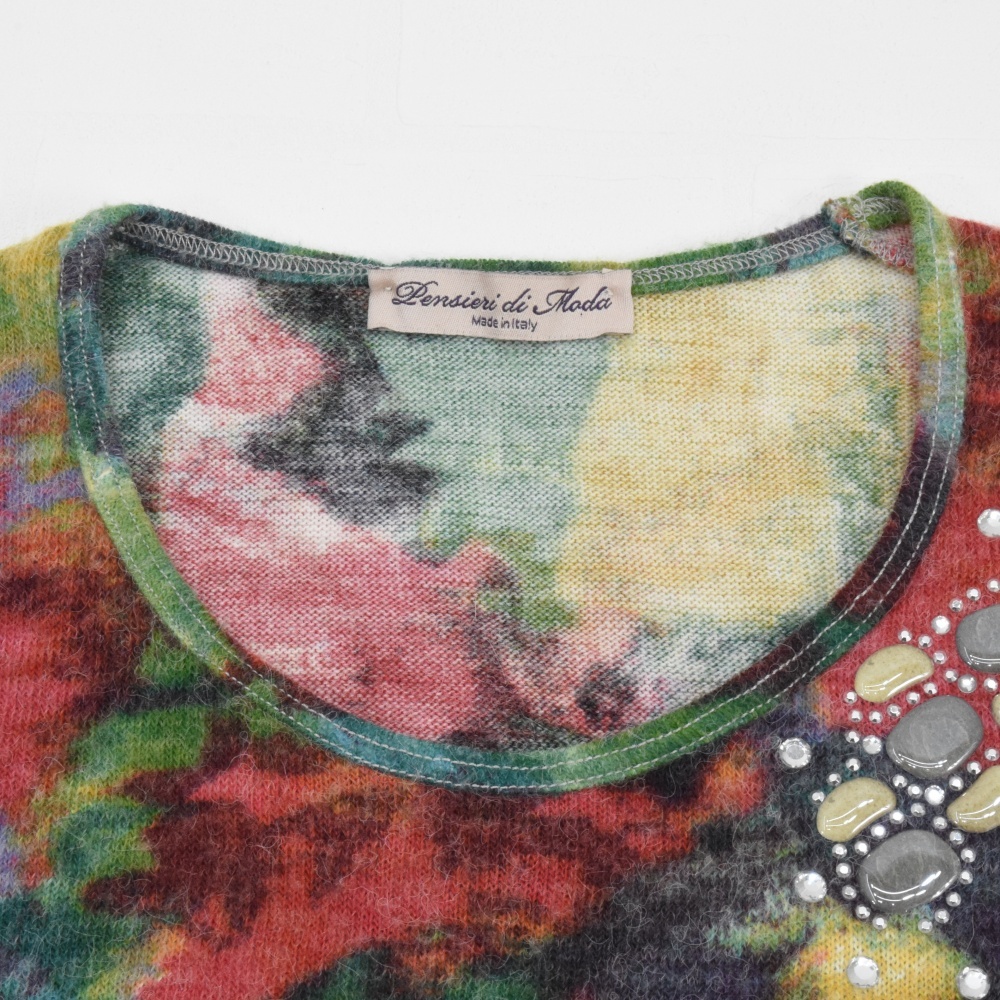 Pensieri di Moda◇ボタニカル柄起毛七分袖ニット◇サイズ44◇パンセディモーダ◇イタリア製 收藏
