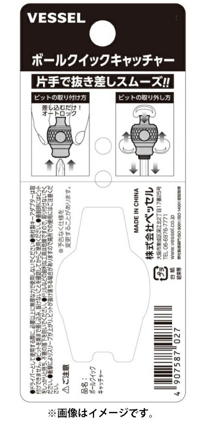 ベッセル(VESSEL)ボールクイックキャッチャー No.QB-22※販売はタイトルの商品です。ネジ締め出来るビットホルダー●強化プラスチックを用いた軽量設計。●クッショングリップでソフトな手触り。●変色に強いアルマイト処理。●ドライバーとして使用可能。注意事項●取り付け工具重量最大500gまで。●ドライバーとして使用する際に、必要以上に無理な力で使用しないでください。●クイックキャッチャーに他社製キーアダプターは取付できません。●ビットを奥まで差し込み、抜けないことを確認してからご使用ください。●着脱時はビットをしっかりと持ち、不意の落下を防いでください。●ドリルなどの鋭利な工具は危険ですので、取り付けないでください。●衝撃によりスリーブが上がり、ビットが抜け落ちる場合がありますので高所での使用にはご注意ください。この商品はお取り寄せの為、発送までに1~2週間かかります。メーカー欠品等でご注文をお受けできない場合が御座います。