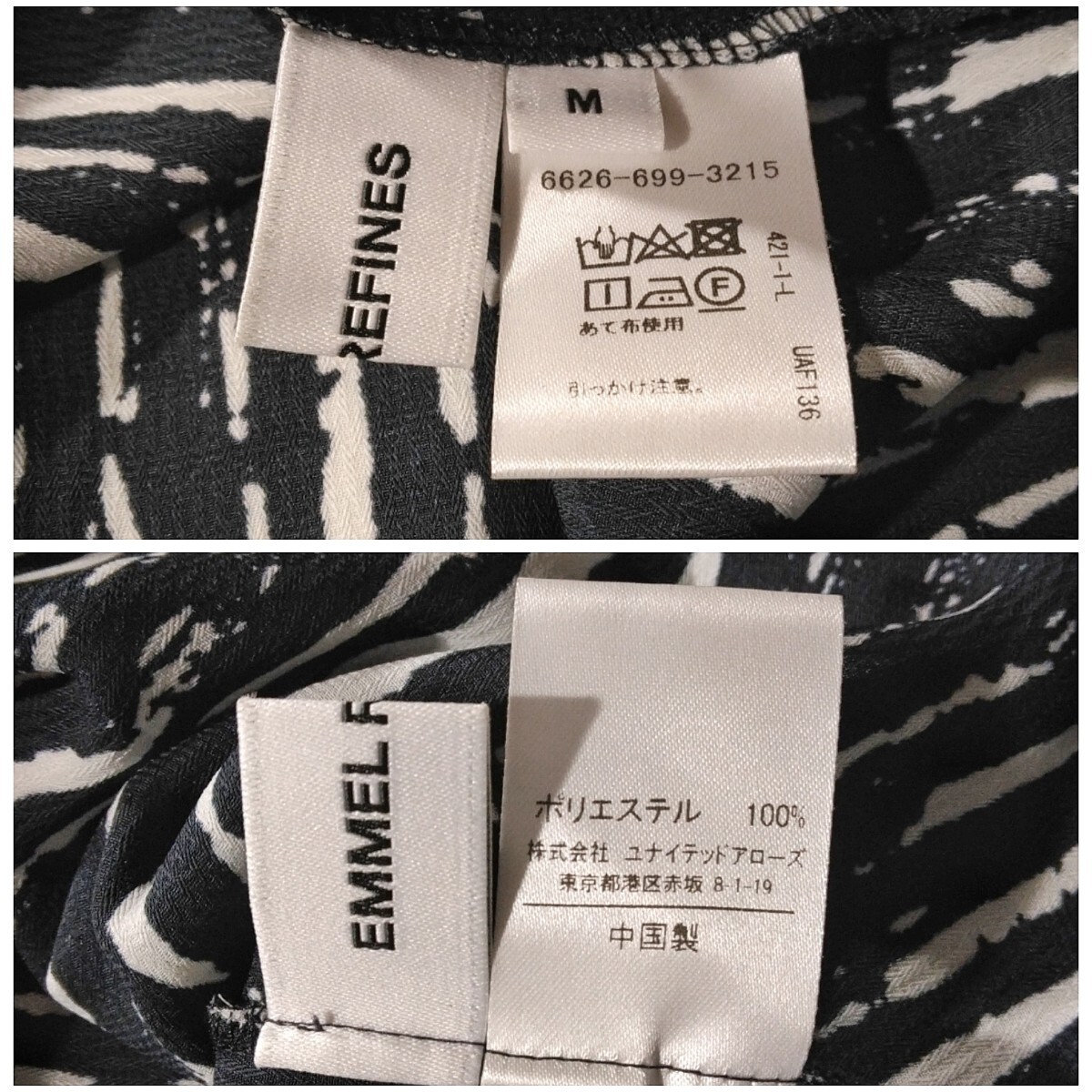 45 【エメルリファインズ】 総柄 ロングワンピース M ブラック 黒 白 ストライプ 長袖 ゆったり バンドカラー リボン ユナイテッドアローズ 收藏