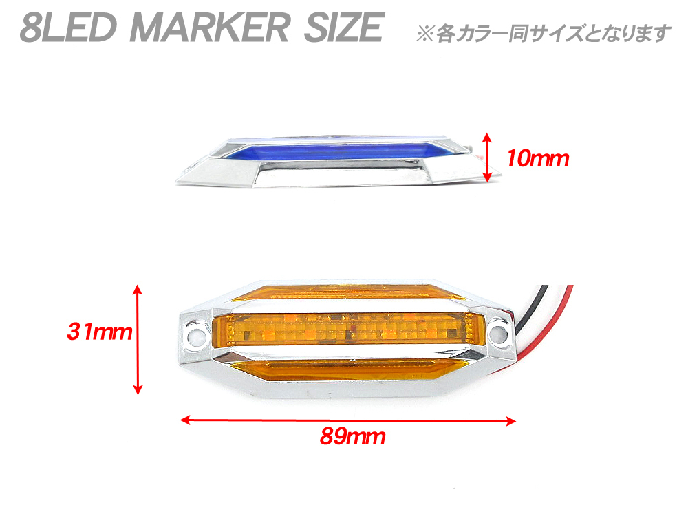 8LED マーカーランプ 12V 24V 兼用 青 ブルー BLUE 008B 2個入 ◆ サイドマーカー 高輝度 カラーレンズ クロームメッキ トラック 汎用 收藏