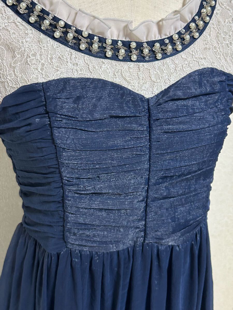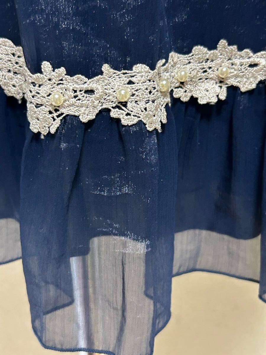 7980円【axes femme ★アクシーズファム】ゴージャスビジュー付きワンピース・シフォン・ツヤ感・ネイビー・Mサイズ 收藏