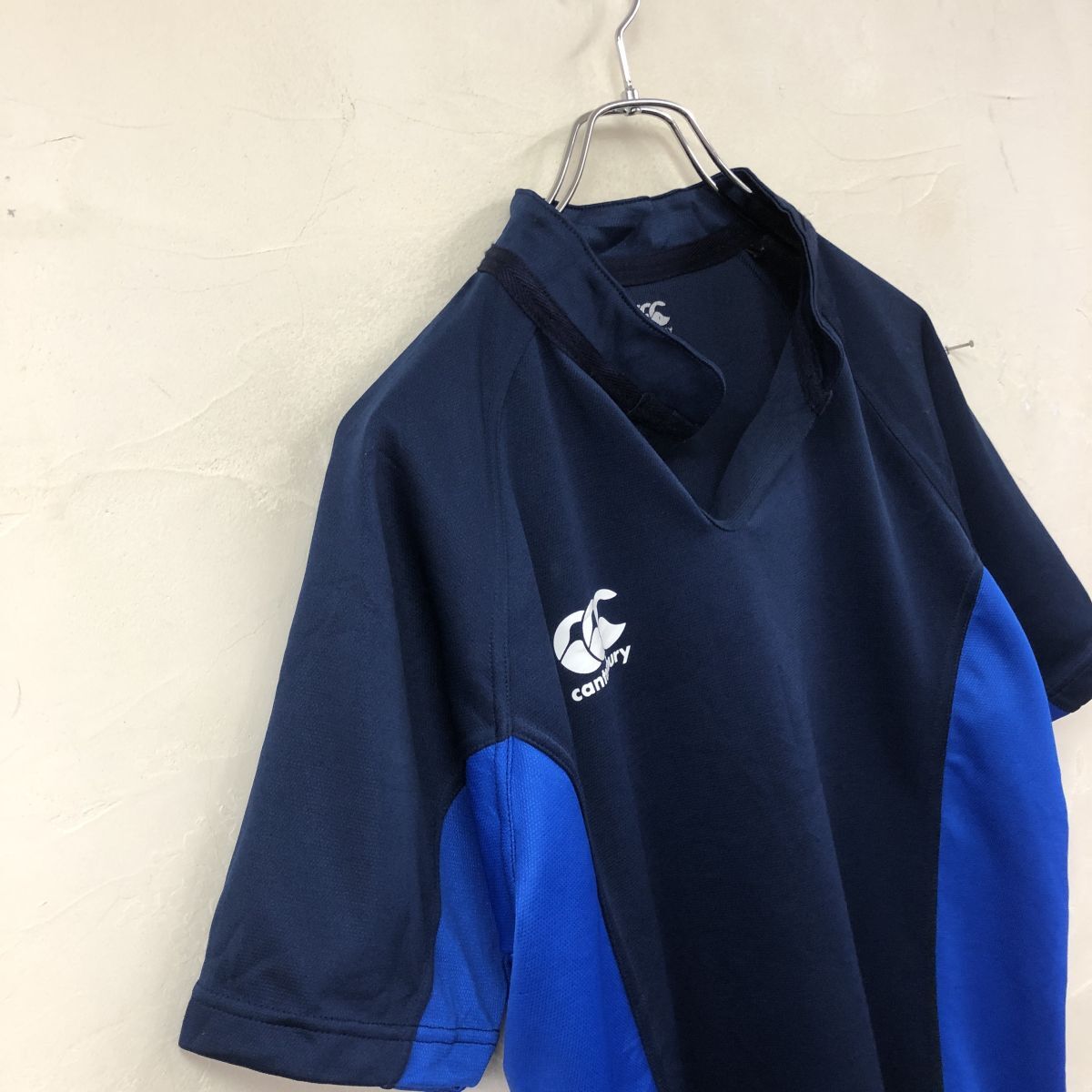 2K1145-G-N◆ canterbury カンタベリー 開襟トレーニングシャツ ジャージー 半袖 バイカラー ストレッチ スポーツ ◆ sizeXL ネイビー 青 收藏