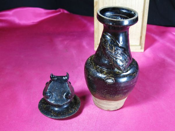 e 宋代宮殿人物形黒釉蓋付壺 宋時代 遺跡発掘品 中国 陶器/ 副葬品 墳墓 シルクロード 明器 埋蔵文化財 素焼き 洛陽 收藏