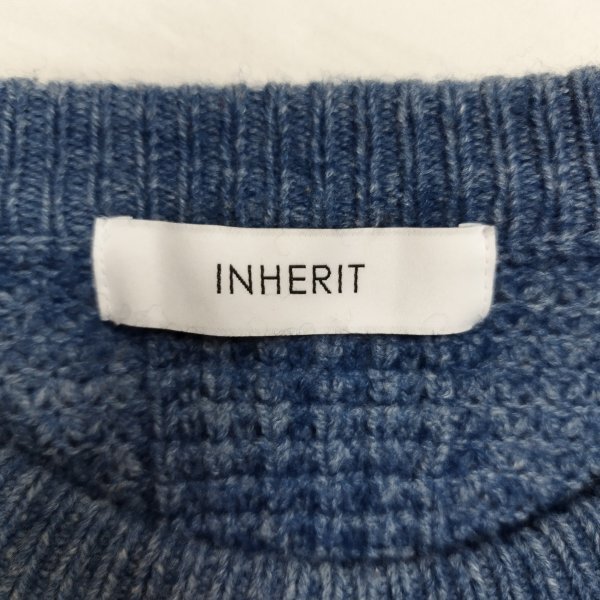 I785 INHERIT インヘリット ニット ウォッシャブル ワッフル セーター クルーネック 長袖 カジュアル シンプル ウール アクリル ブルー系 M 收藏