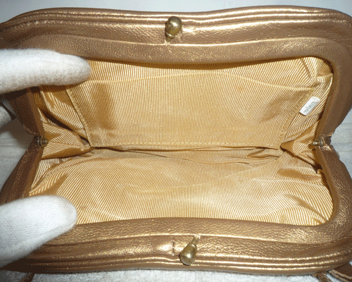 ニューヨーカー NEW YORKER レザー 本革 ゴールド 金色 チェーン がま口 ミニ ハンド バッグ レディース 收藏