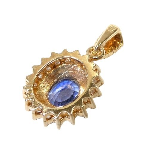 【商品説明】美しいサファイアの周りにダイヤモンドを飾ったゴージャスなペンダントトップ。エレガントなデザインで上品な大人のオーラを演出します。パーティーなど華やかなシーンにもピッタリの逸品です。【状態】ジュエリークリーナーにて洗浄済みです。微小キズ等ありますが輝きもあり綺麗な状態です。中古品につき、些細なダメージはご了承ください。【サイズ】・W 9.5mm H 11mm(カン含まず)・カン: W 3.5mm H 6.5mm D 3.0mm・サファイア:W 4.5mm H 5.0mm・総重量:約 1.7g【カラー】画像でご確認ください【素材】・K18・サファイア(カラット不明)・ダイヤモンド 0.14ct【仕様】刻印:K18 D0.14【付属品】なし※鑑別書・鑑定書は付属しておりませんのでご了承ください※8枚目画像のチェーンは撮影用備品で商品に含まれません【商品番号】1471_1【注意事項】※商品の状態、色味などは当店の判断によるものです※あくまでも中古品につき、些細なダメージや見解の相違による返品はお受けできません※サイズはすべて平置きでの実寸です。多少の誤差はご了承ください※気になる点がございましたら、入札前にお問い合わせください※お取引に関する詳細はストア情報でご確認くださいこちらの商品は【ネコポス】での発送が可能です※ポスト投函・簡易包装での発送・日時指定不可・同梱不可※紛失・破損に対する補償金額は3,000円(税込)まで予めご了承の上、ご選択ください