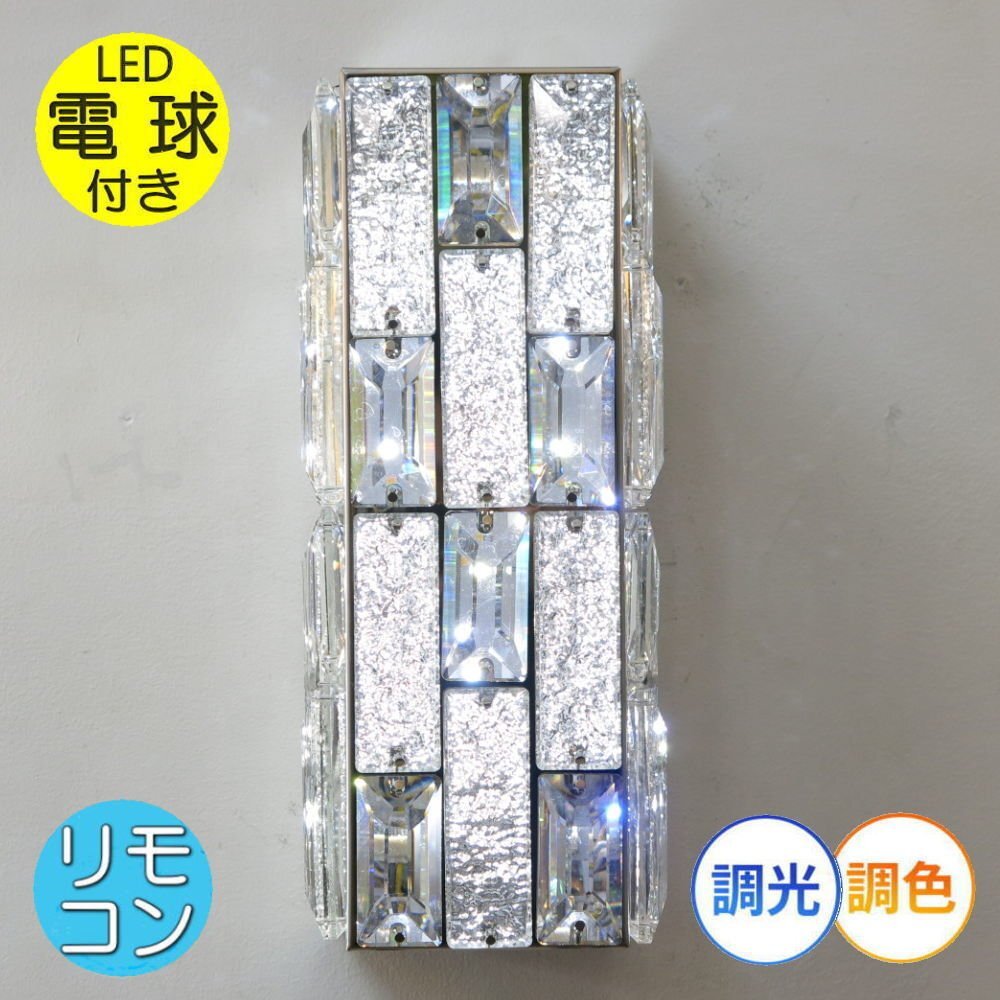 【LED付き!】 新品 シンプルデザイン クリスタル ブラケットライト リモコン付き LED 暖色&白色 調光&調色タイプ 壁掛け照明 壁照明 收藏