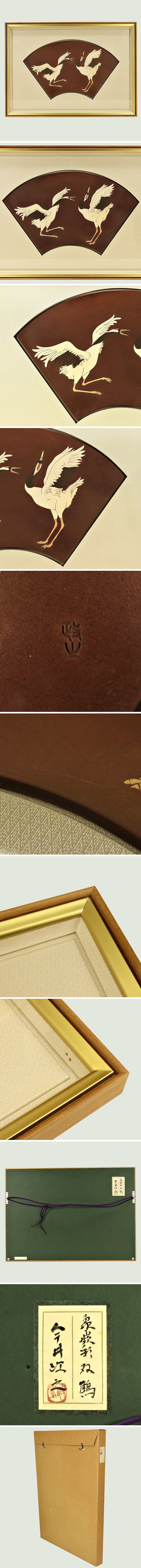 真作保証 文化勲章受章陶芸家 今井政之作 象嵌彩双鶴 扇面陶板画 約28.5×53.3cm タトウ箱 絵画 書画 骨董品 古美術品 1634scyN 收藏