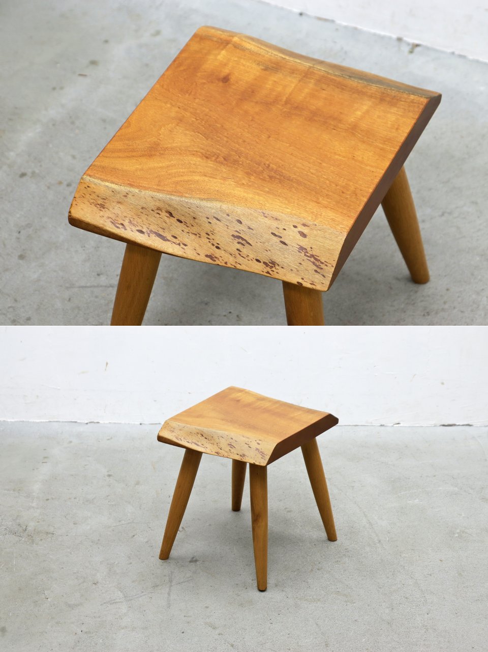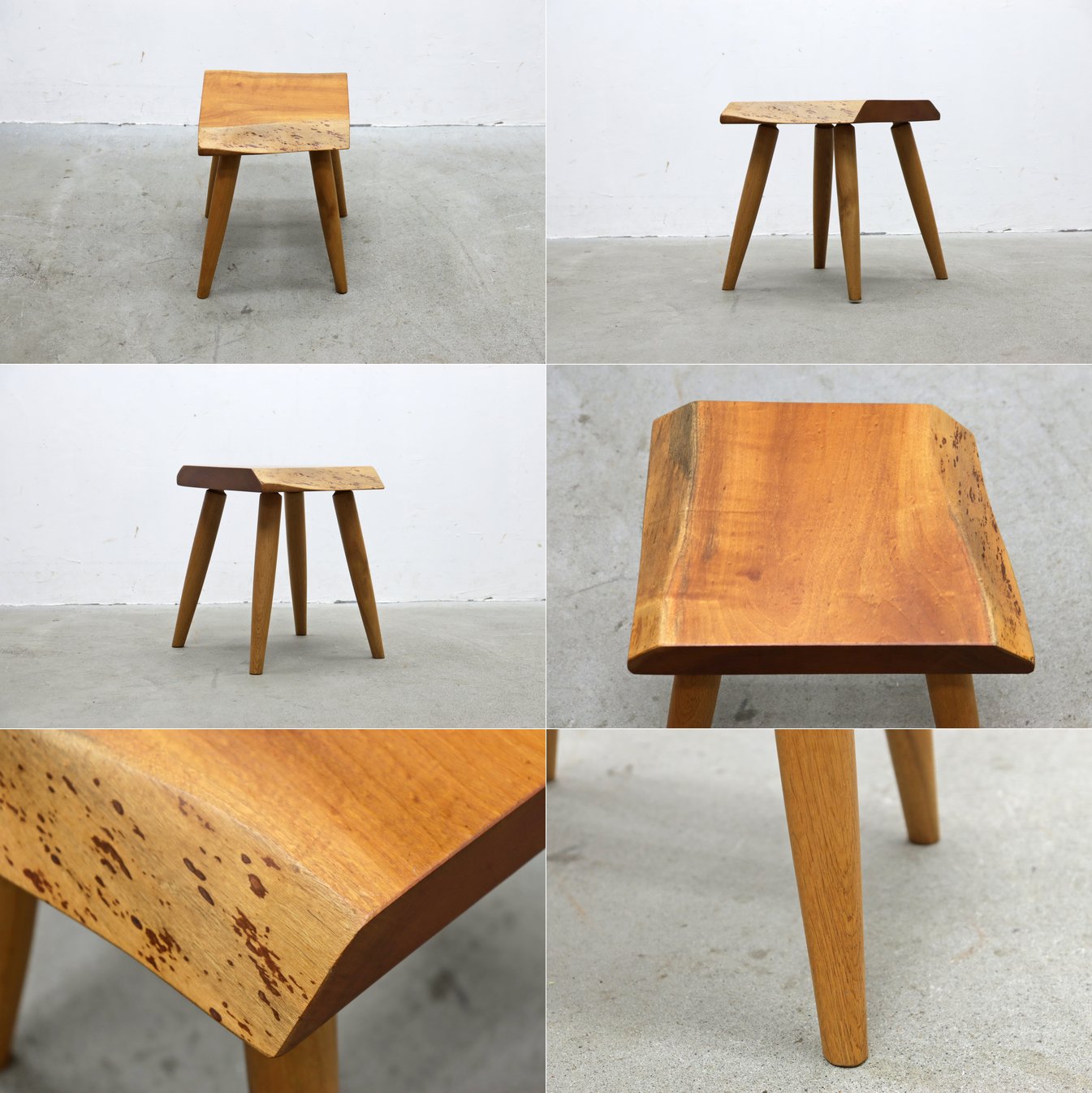 ◆耳付き 一枚板 無垢材 サイドテーブル スツール チェア 花台 展示台 オーク モダン/飛騨民芸プリミティブ/PJT07016◆ 收藏
