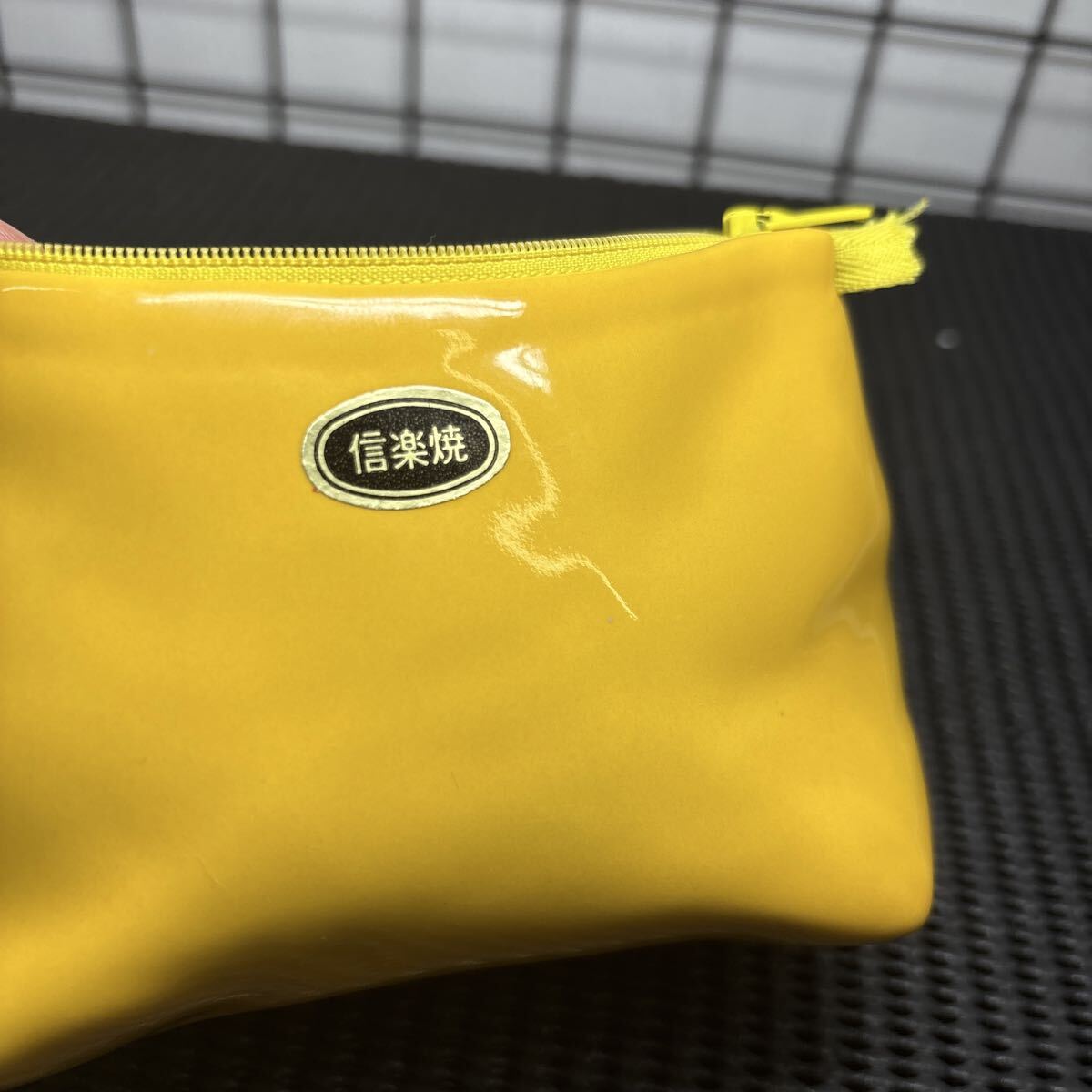 ★レア 信楽焼 陶器 黄色いポーチ 置物 インテリア コレクション 珍品 約W14cm×D9cm×H8.5cm 陶器製 ポーチ型容器★ 收藏