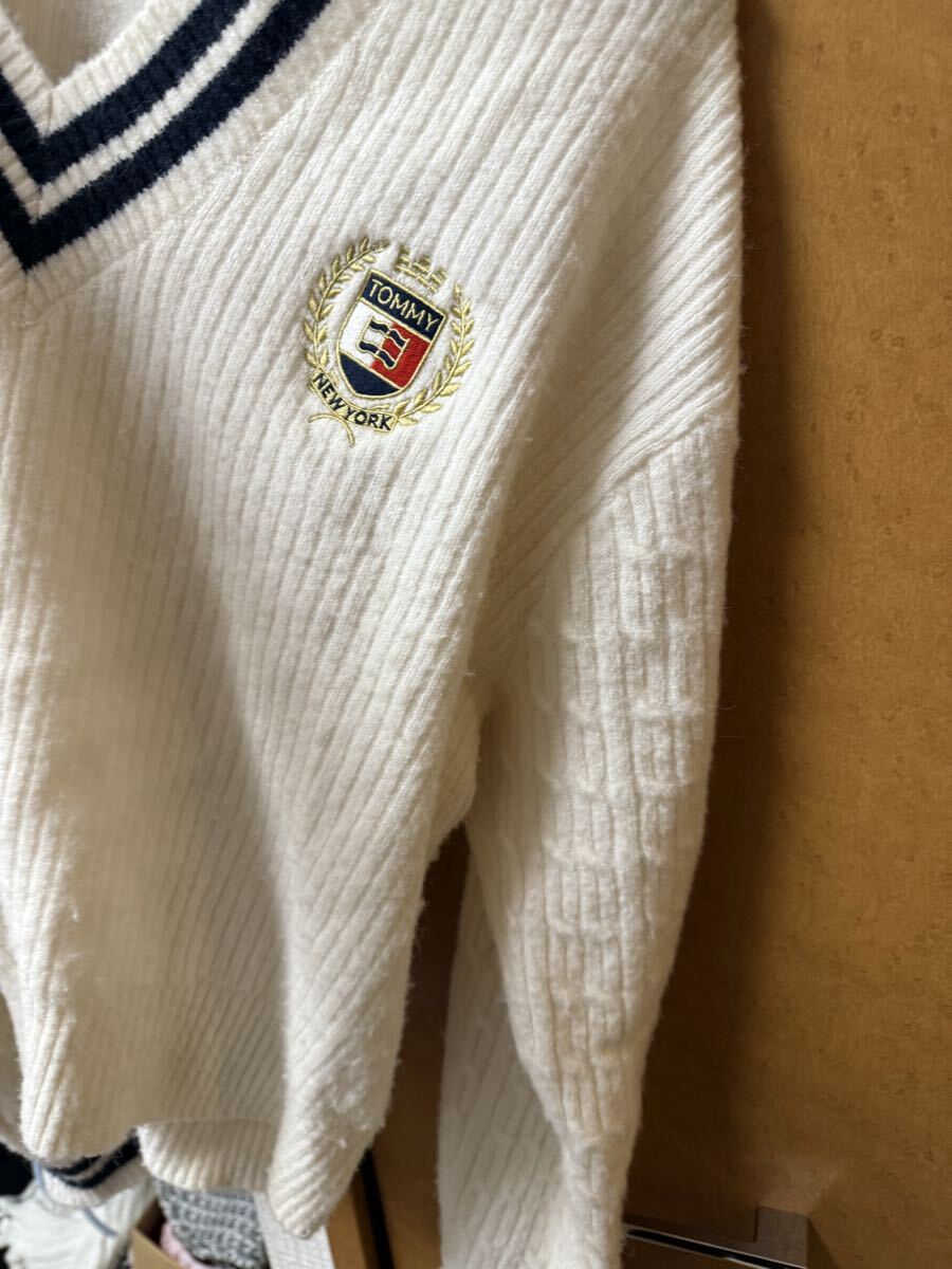 トミーヒルフィガー セーター ニット 萌え袖 白 vネック オーバーサイズ xl lサイズ 2025aw 2024aw tommy hilfiger 学生 制服 收藏