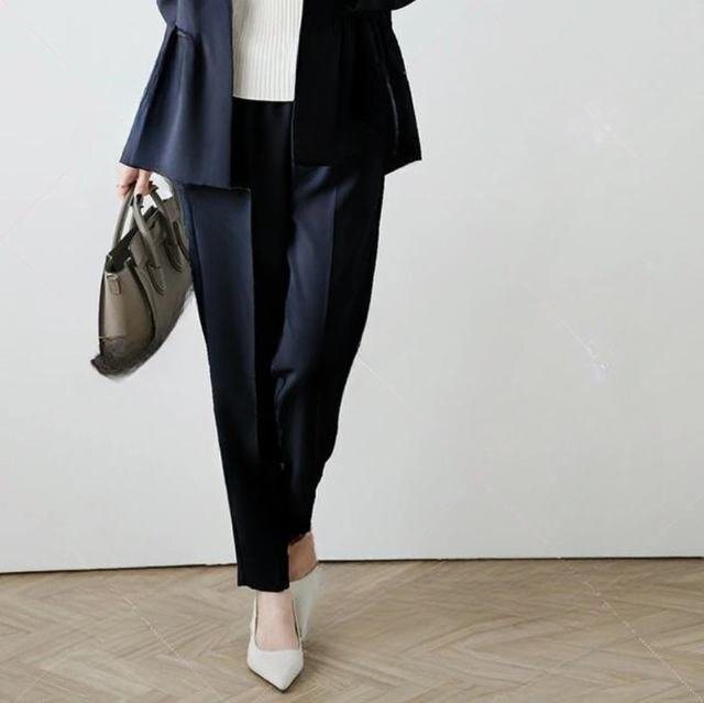 セットアップ 上下セット 長袖 ノーカラー ボタン ペプラム テーパード パンツ セレモニースーツ フォーマルスーツ ビジネス ネイビーM 收藏