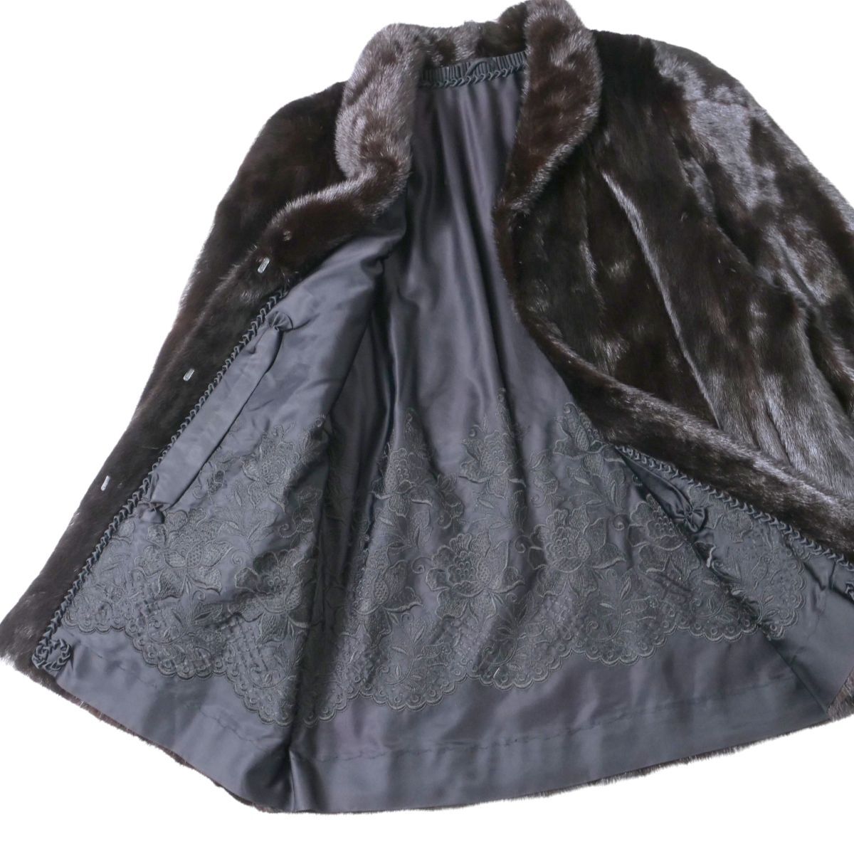 GS2861◇SAGAMINK サガミンク 金サガ 逆毛衿 ダークミンク ファーコート 毛皮コート 裏:花柄刺繍 ミドル丈 サイズ13