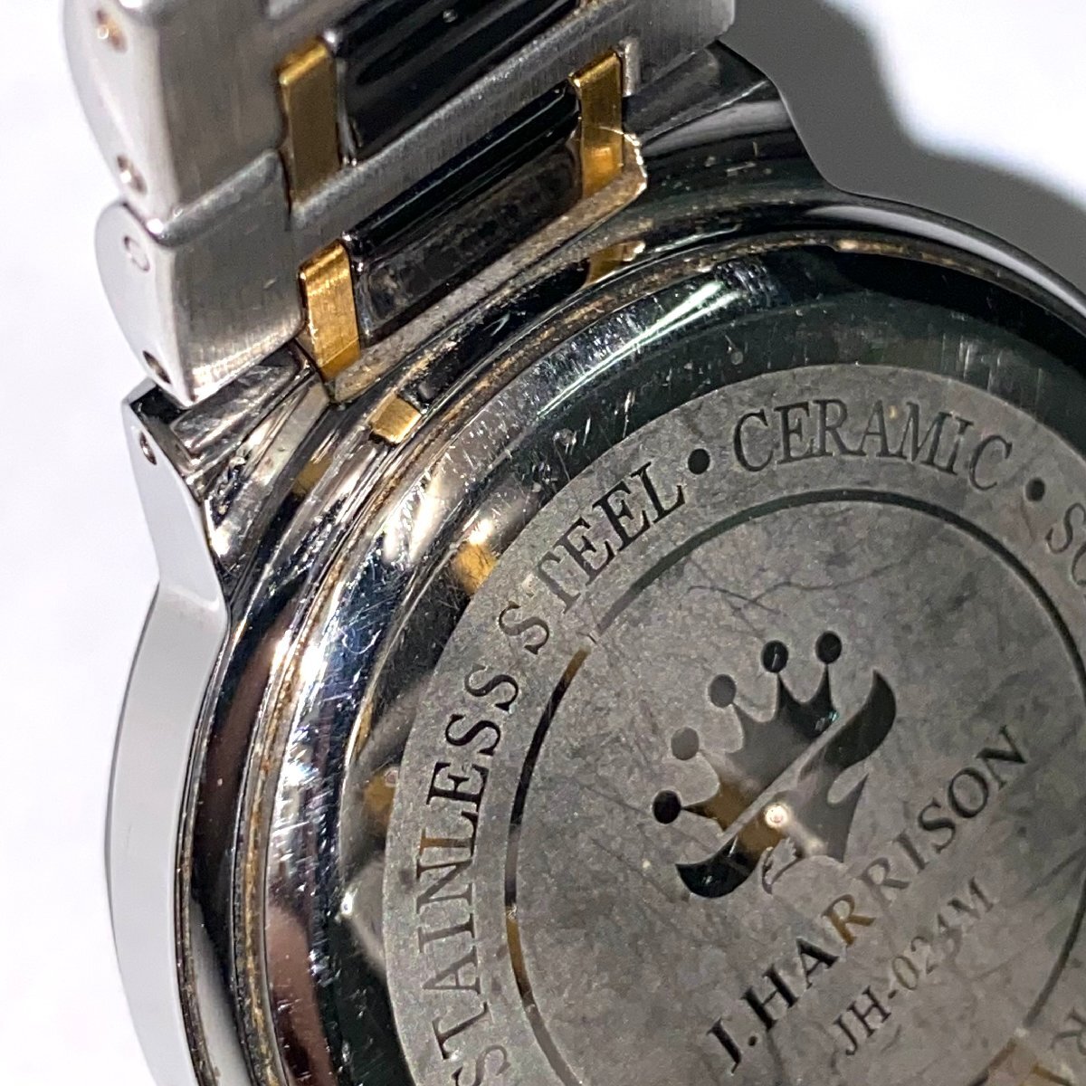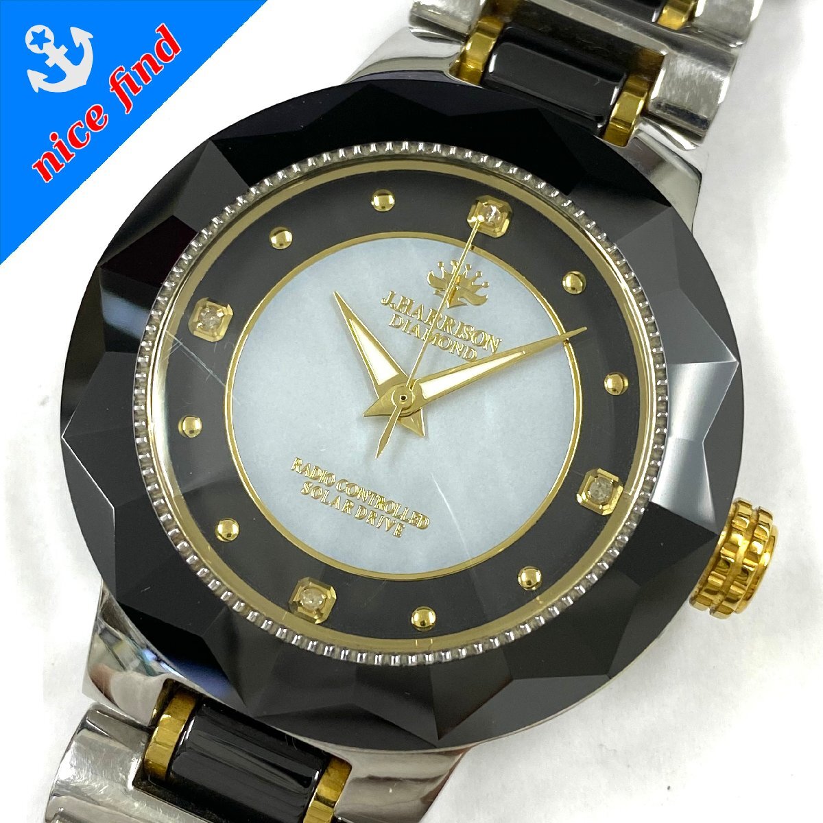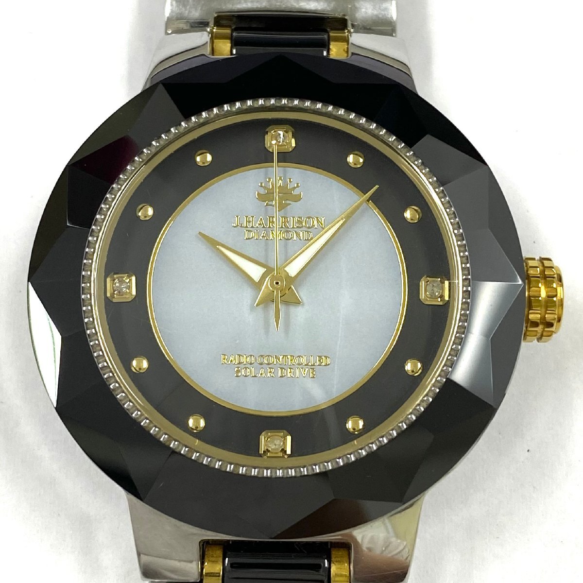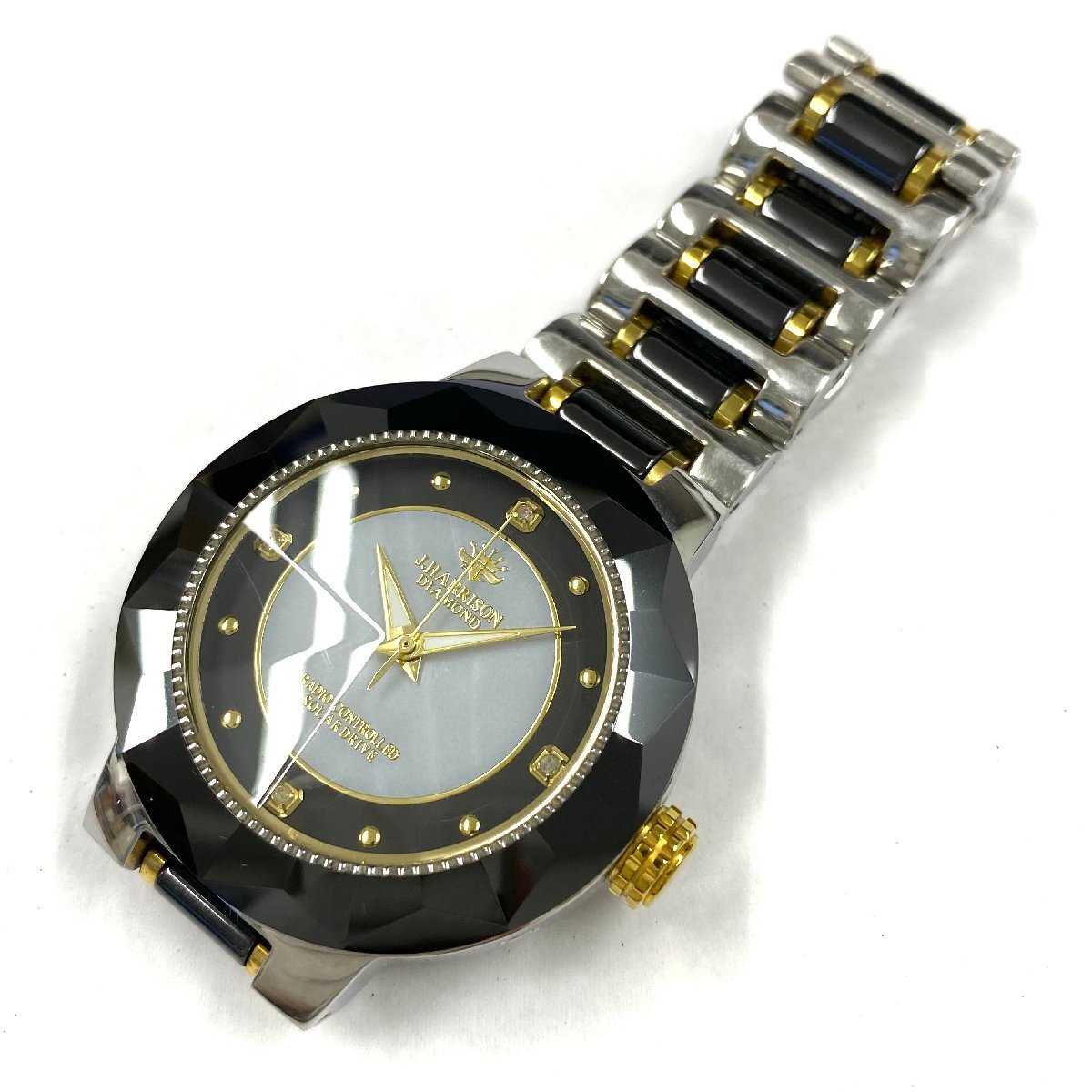 ◆ジョンハリソン J.HARRISON◆DIAMOND JH-024M 電波ソーラー 腕時計 メンズ ウォッチ グレー文字盤 SS 天然ダイヤモンド 不動品 收藏