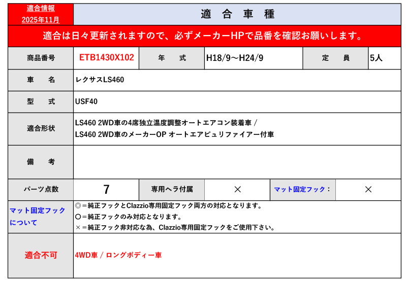 [クラッツィオ]USF40 レクサスLS460_独立オートエアコン付(H18/9~H24/9)用カスタムフロアマット(ラゲッジ付)[ETB1430X102] 收藏