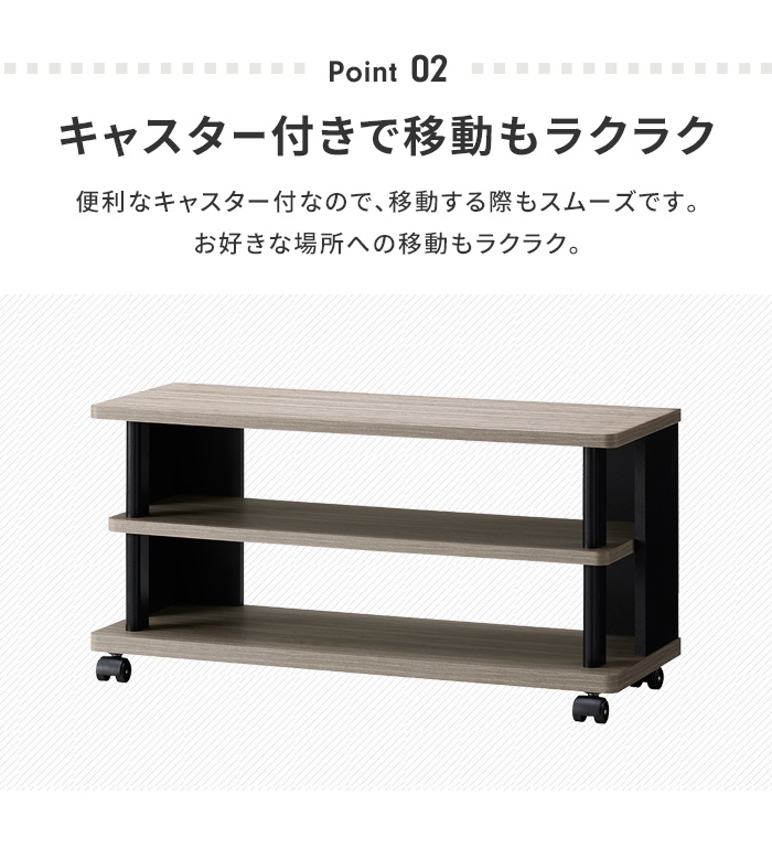 | 人気のグレー色とブラックのシンプルなオープンローボード。 キャスター付で移動もらくらく。 一人暮らしや子供部屋にぴったりのシンプルなデザインです。 幅79・幅98・幅120の3サイズ展開。 |