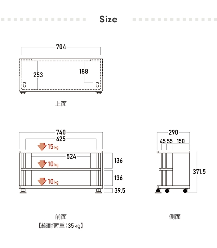 | [全体]15kg [天板]10kg [棚板]10kg |