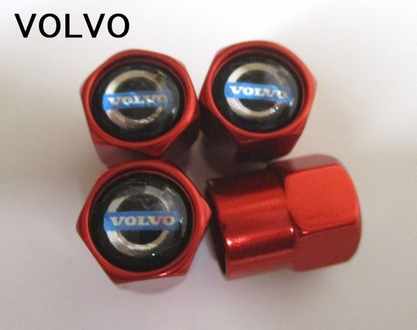 【新品・即決】光沢 赤 ボルボ VOLVO エアバルブ キャップ 4個セット ホイール タイヤ 收藏