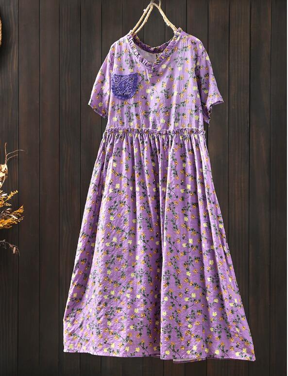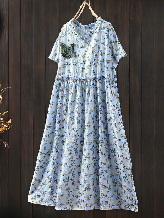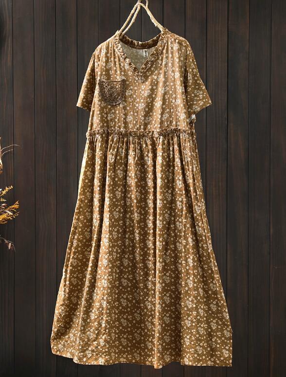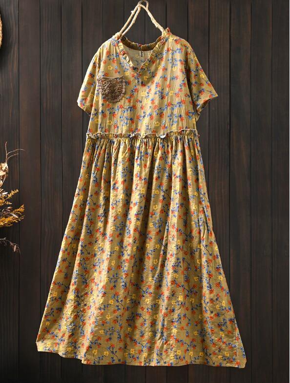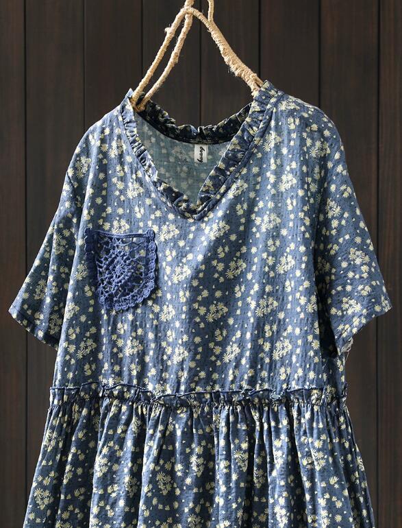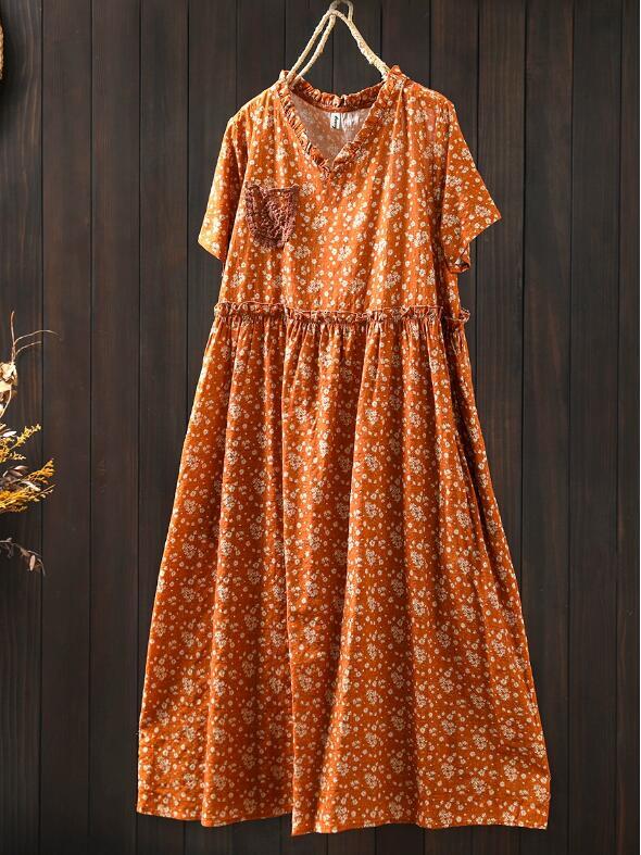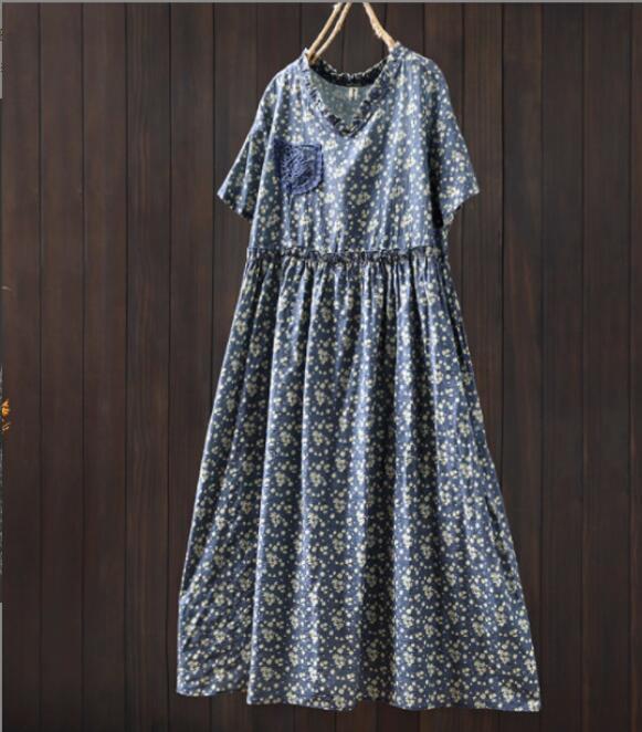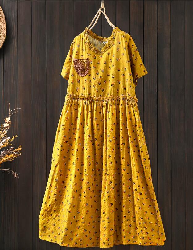 新入荷人気ワンピース ゆったり ウエスト調整可能 フリーサイズ レース 麻綿混 ナチュラル 通気性肌触り抜群 切り替え 飾りポケット 花柄 收藏
