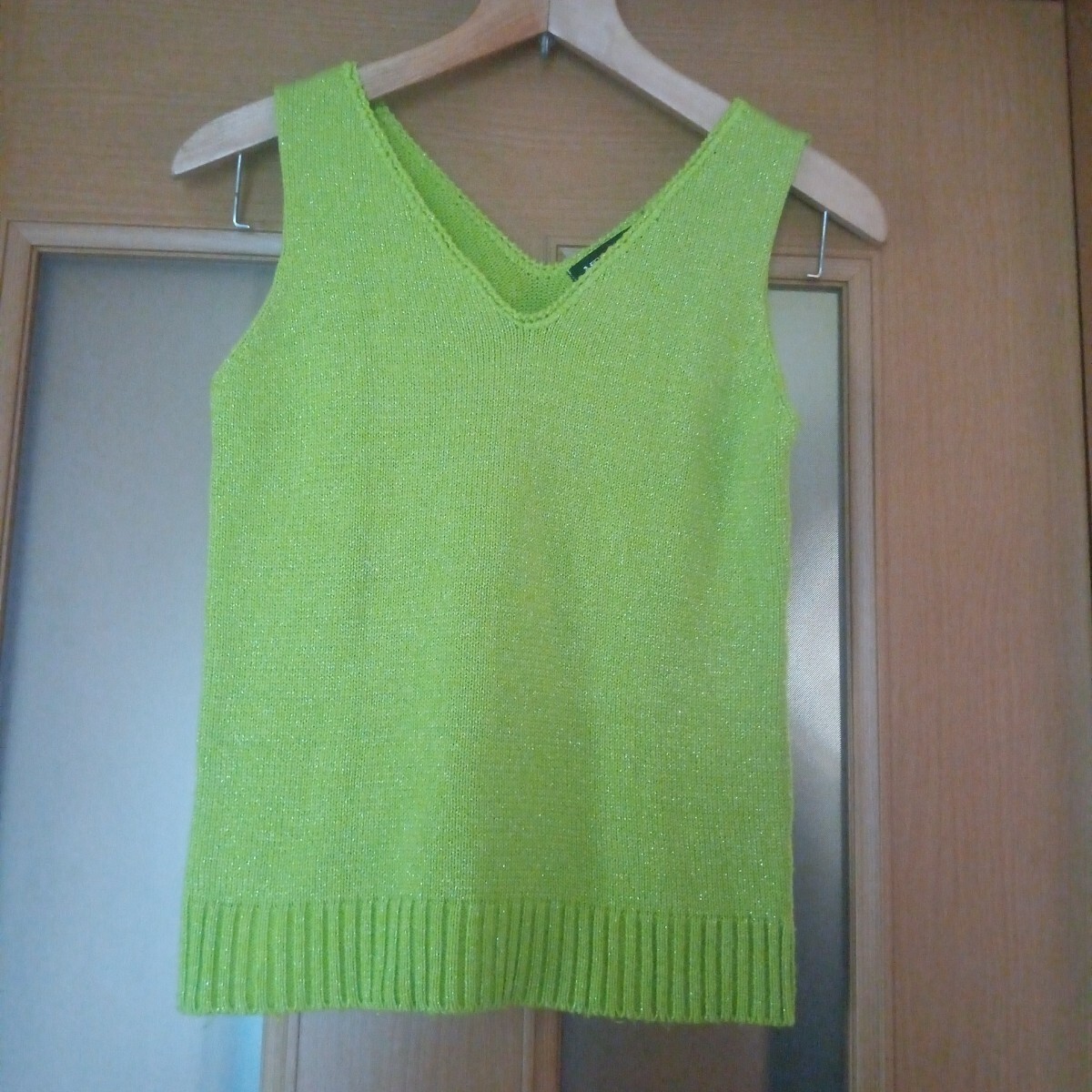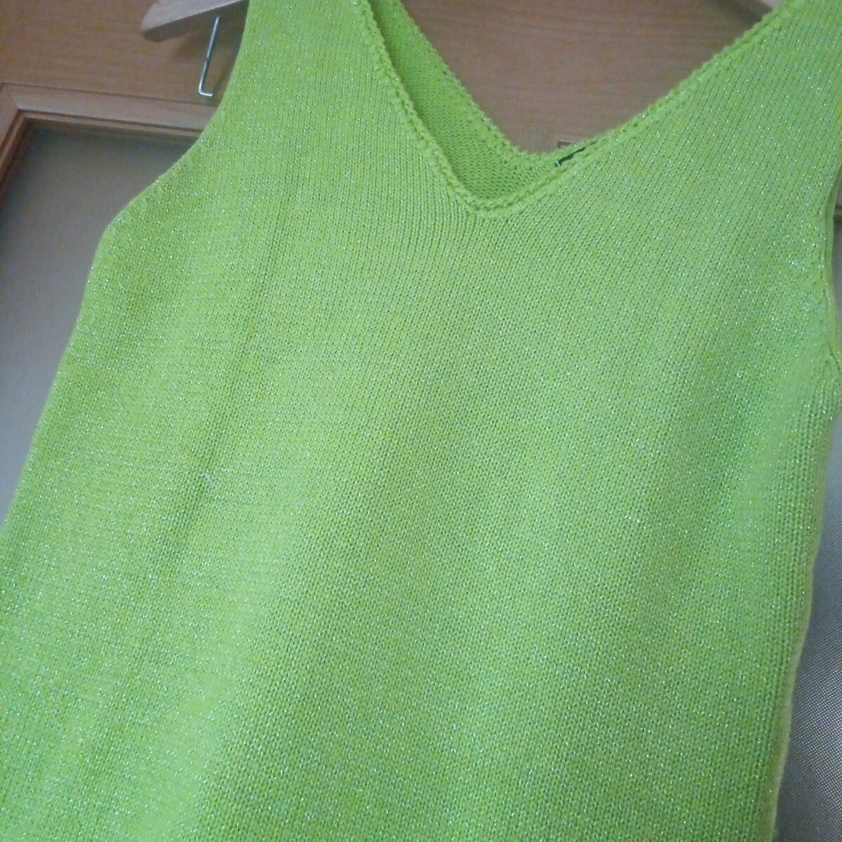 黄緑×ゴールドラメ Vネック ニット ノースリーブカットソー M 收藏