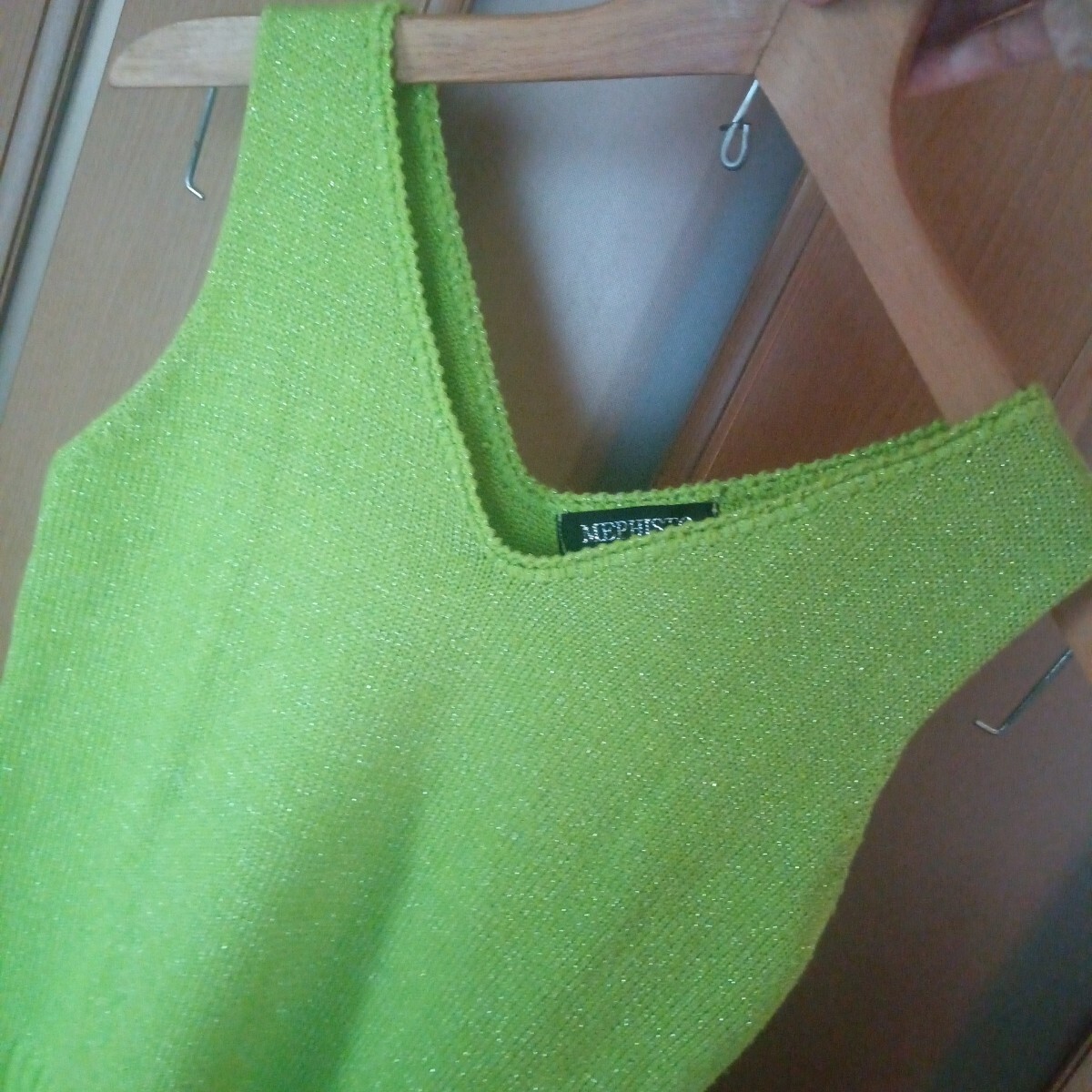 黄緑×ゴールドラメ Vネック ニット ノースリーブカットソー | 出价者 | 信用 | 价格 | 时间 |