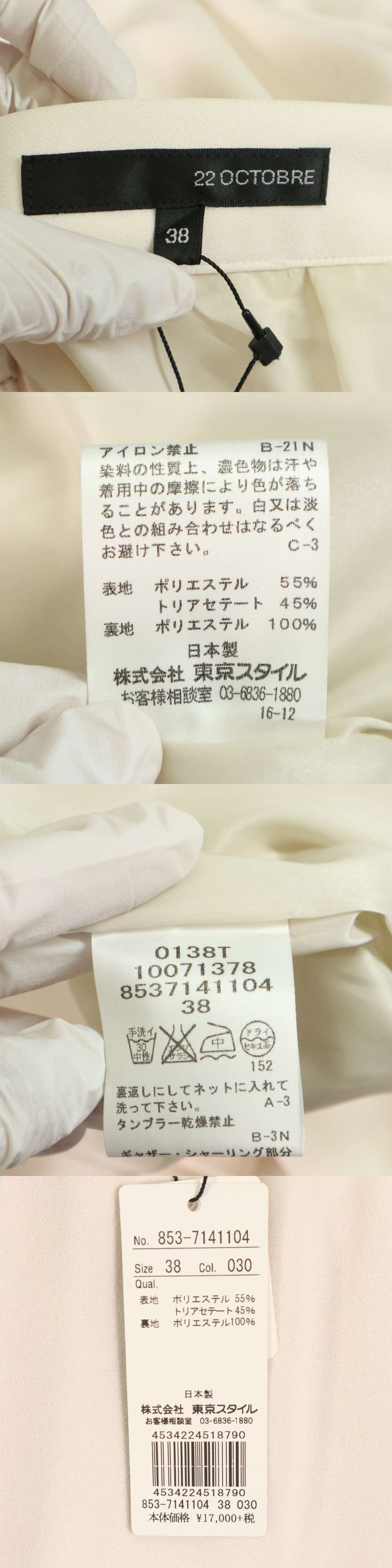 【新品 未使用】 22OCTOBRE 22オクトーブル 春夏★ クロップド ガウチョ ワイド パンツ Sz.38 レディース 日本製 收藏