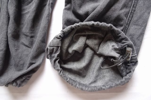 デニムカーゴパンツ/ワイドパンツ/ウエストゴム/花柄ししゅう/裾ドローコード/黒/ブラック/ウォッシュ加工/Lサイズ(9/5R7) 收藏