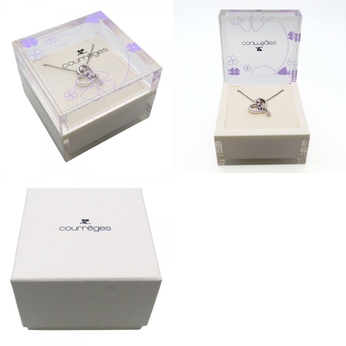 中古 クレージュ ネックレス シルバー ラインストーン シルバー ピンク ハート アクセサリー レディース 女性 收藏