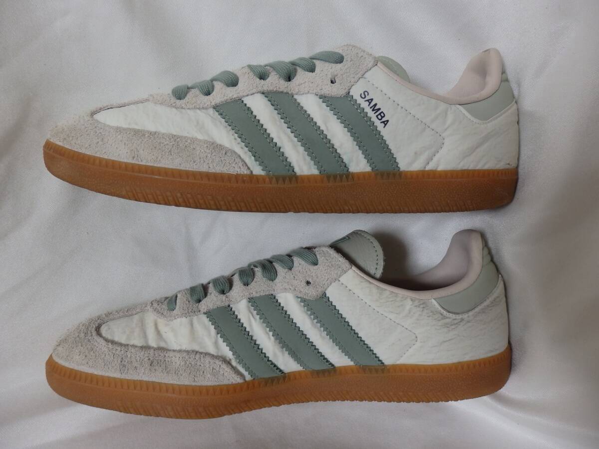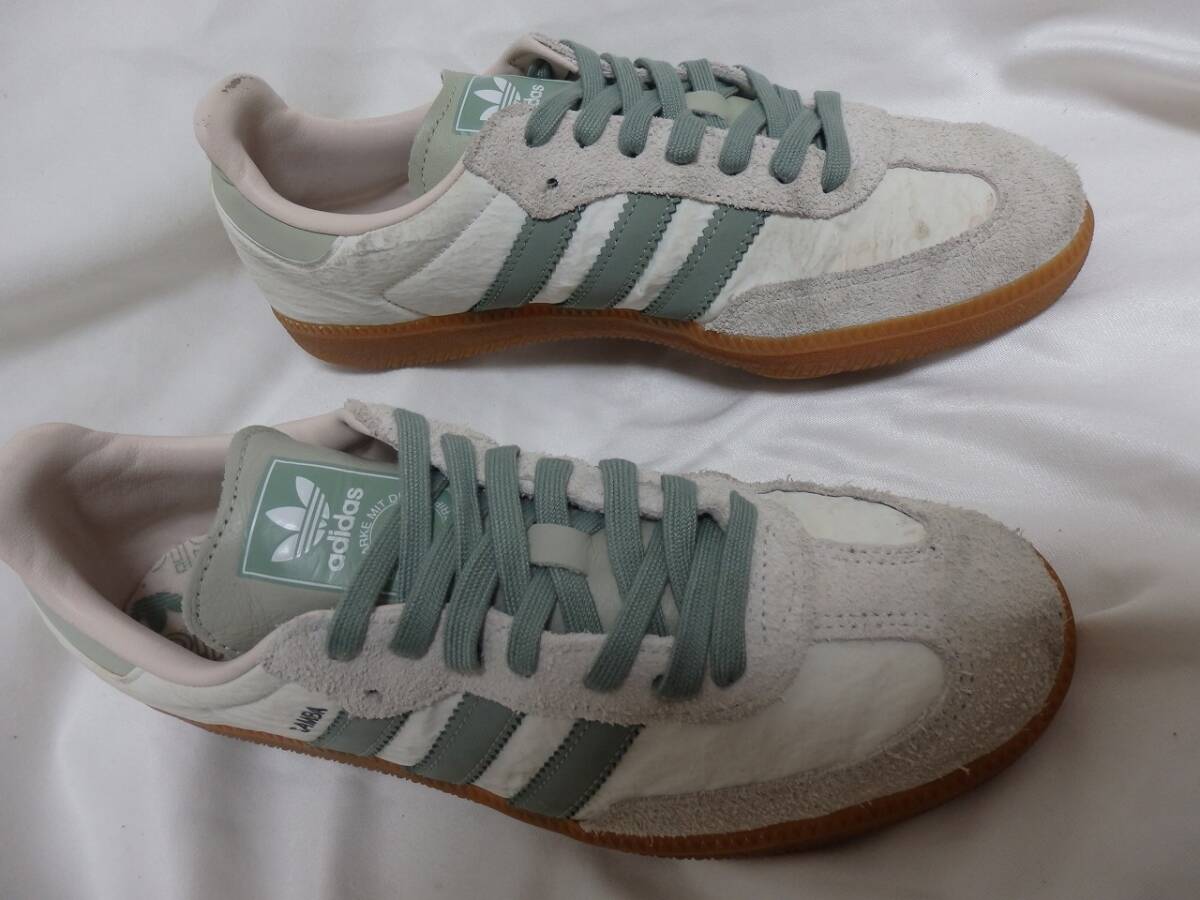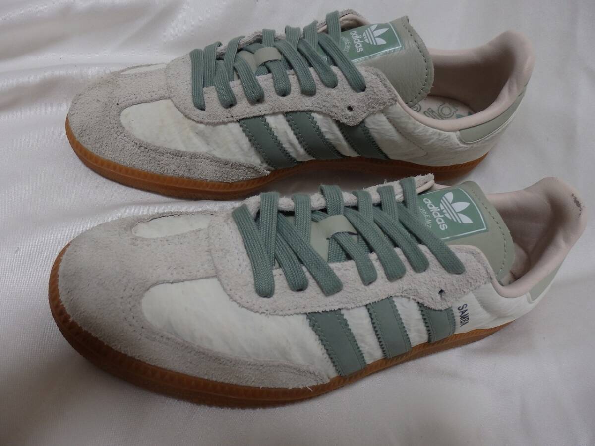アディダス サンバ adidas SAMBA ホワイトスエードレザー×ファブリック JP27㎝ 中古 箱付 アディダススニーカー ライトグリーン 收藏