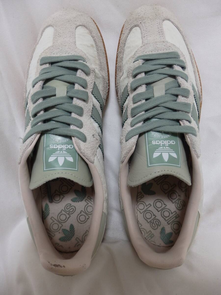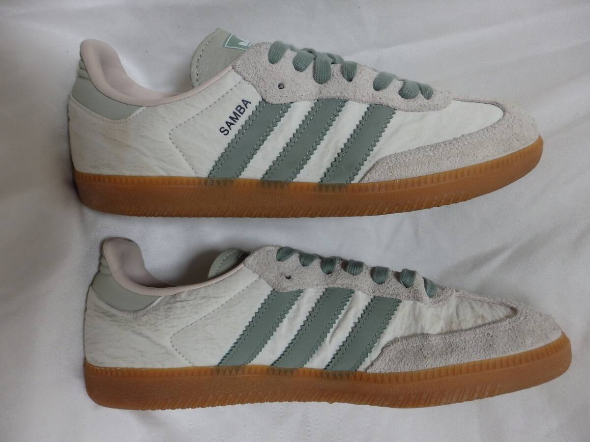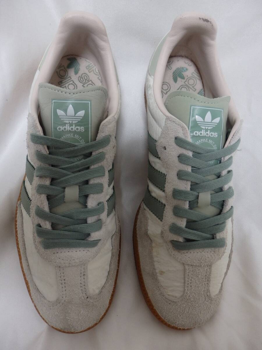 アディダス サンバ adidas SAMBA ホワイトスエードレザー×ファブリック JP27㎝ 中古 箱付 アディダススニーカー ライトグリーン 收藏