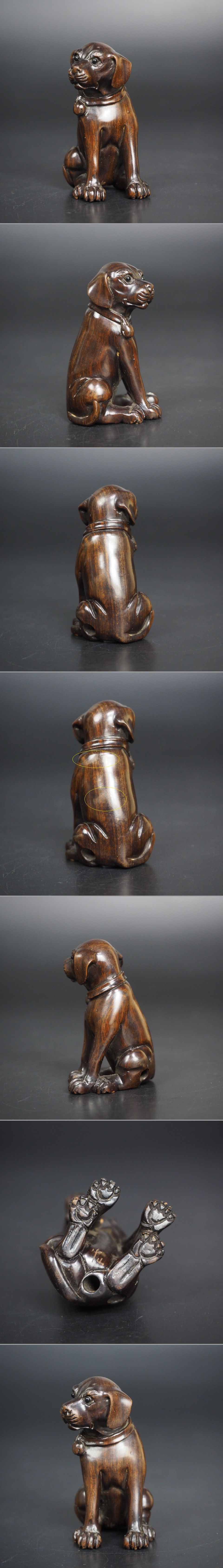 | 商品説明 | 高さ約 5.3cm 幅約 3.5×2.5cm 重さ21g ご覧のように、見事な緑檀根付犬です。緑檀は甘い香りがします、自然界の中、最も重い木で、とても硬い、水に入れると、沈みます。犬の背中に擦れが見られます、総じて良好な状態です、詳しくは写真でご確認ください。 |