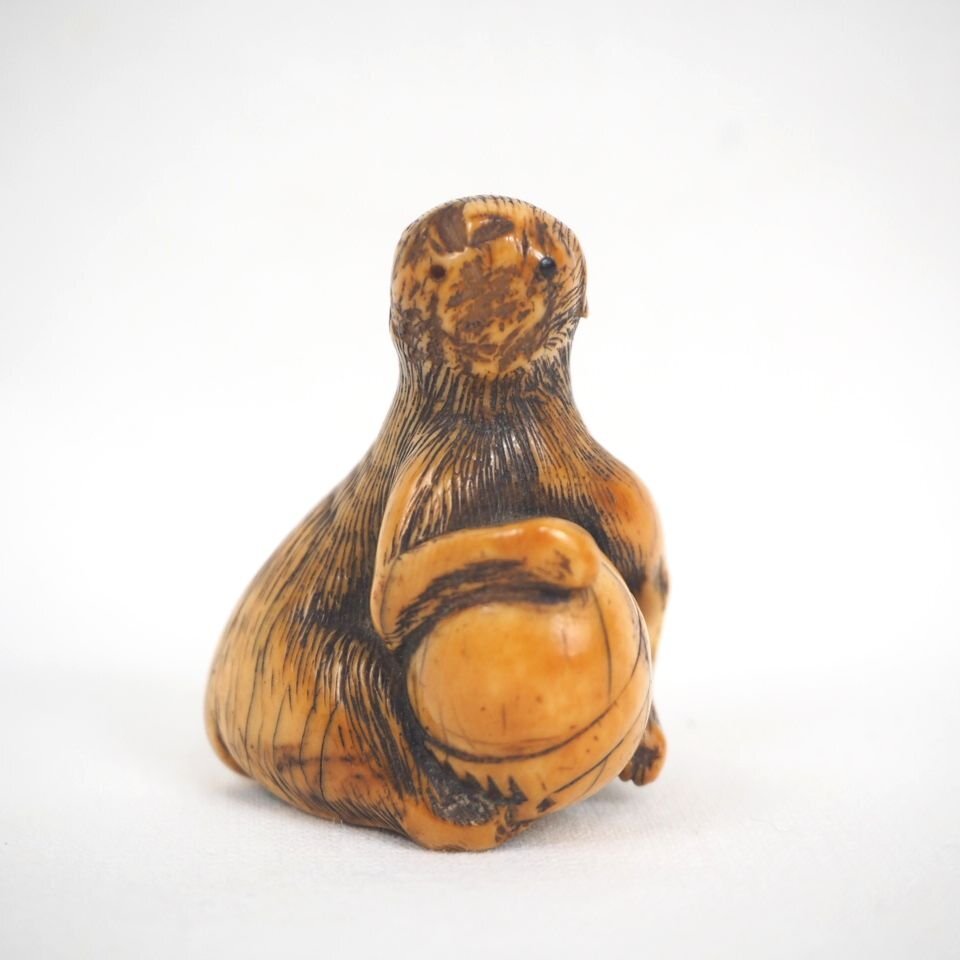 【金富士】値下げ中 江戸時代 牙彫提げ物 根付 高6.3cm 重さ20g 検/提げ物緒締玉根付印籠翡翠珊瑚琥珀印籠煙草入煙管 收藏