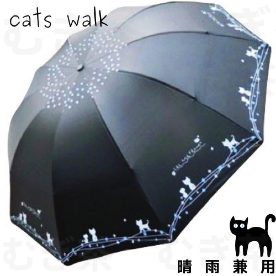レディース 折り畳み傘 日傘 【晴雨兼用・100%完全遮光】 黒 10本骨 猫 收藏